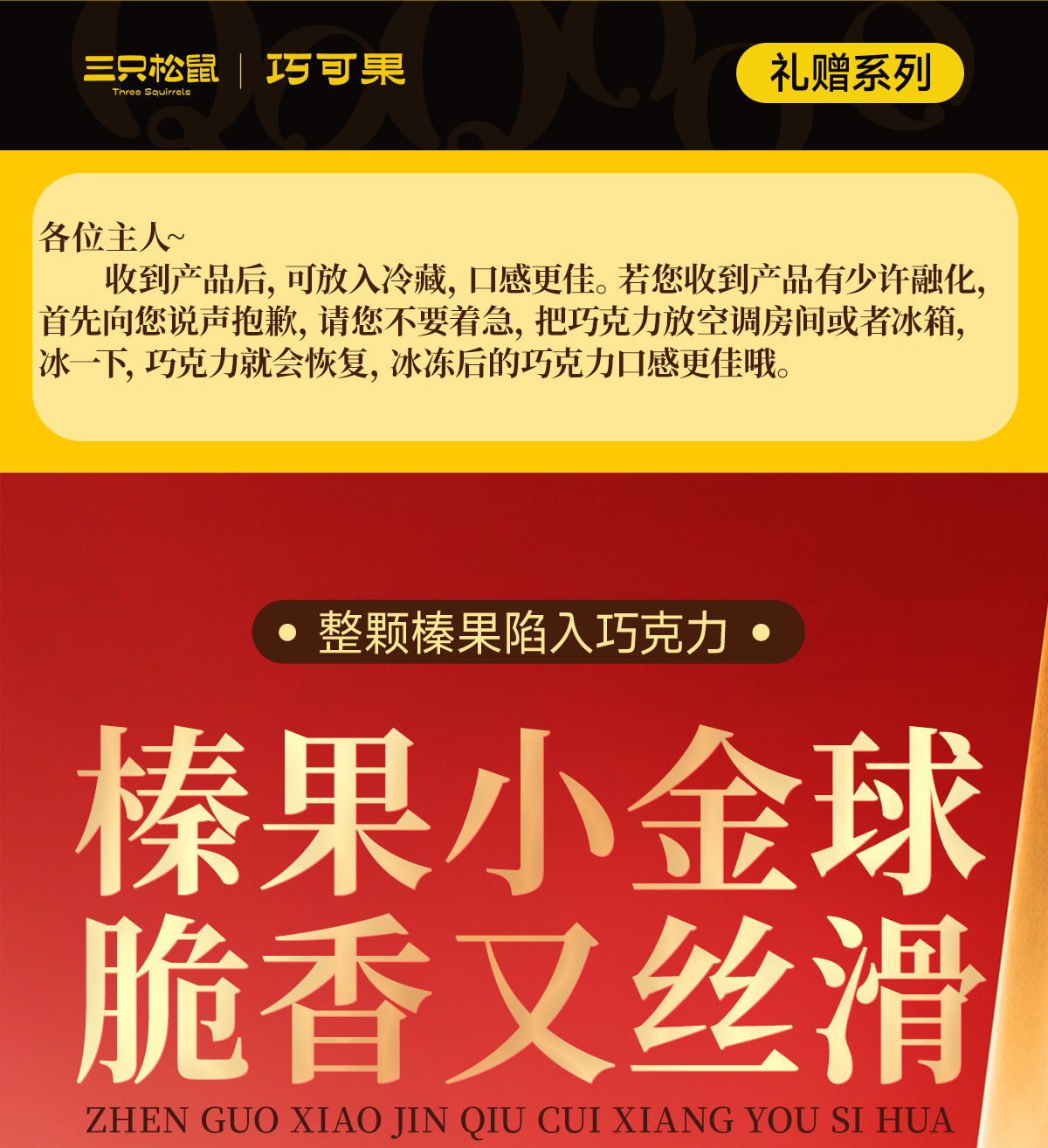 三只松鼠 巧可果_榛果金球巧克力/++/98g