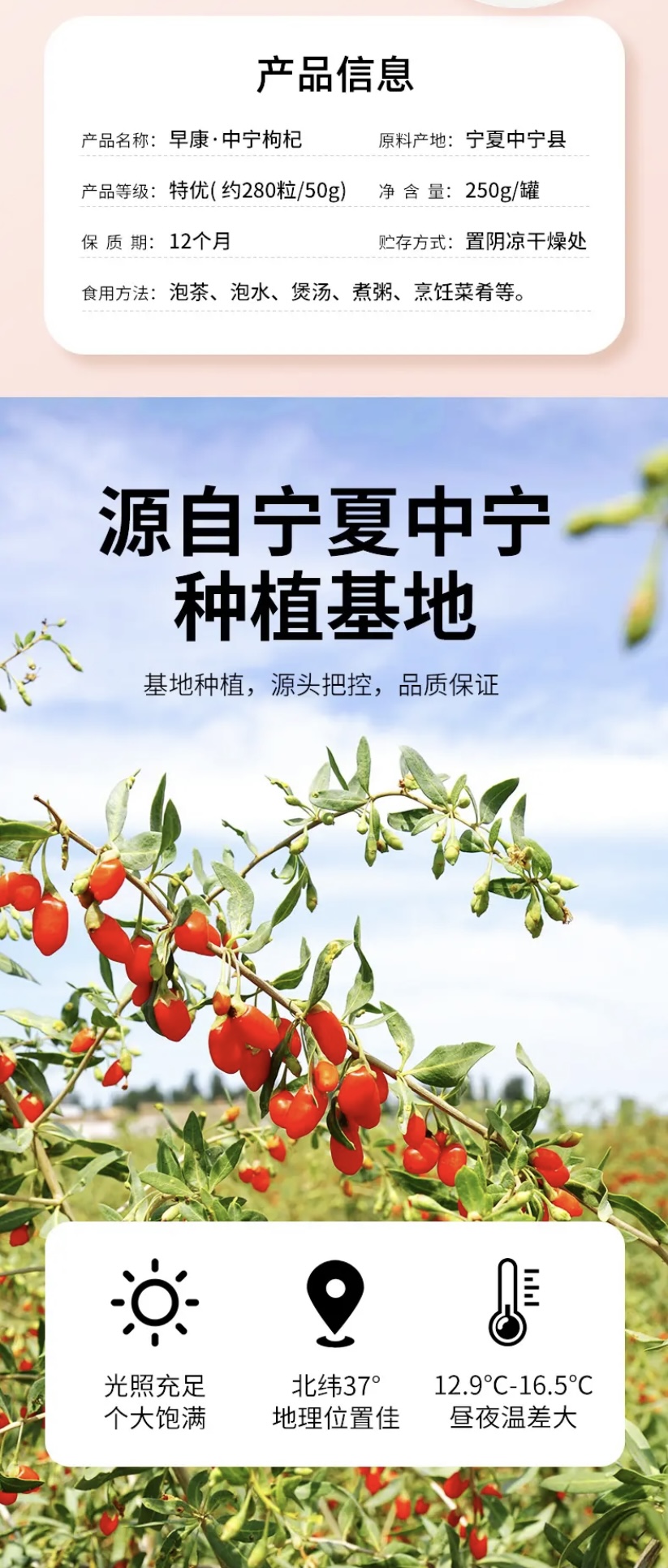 早康枸杞股份有限公司成立于1999年2月,是集枸杞种植、加工、研发、销售,拥有自营出口权的农业产业化国家级重点龙头企业。公司专业生产枸杞鲜汁,枸杞浓缩汁,冷冻枸杞,枸杞果饮,枸杞干果等各类枸杞系列产品