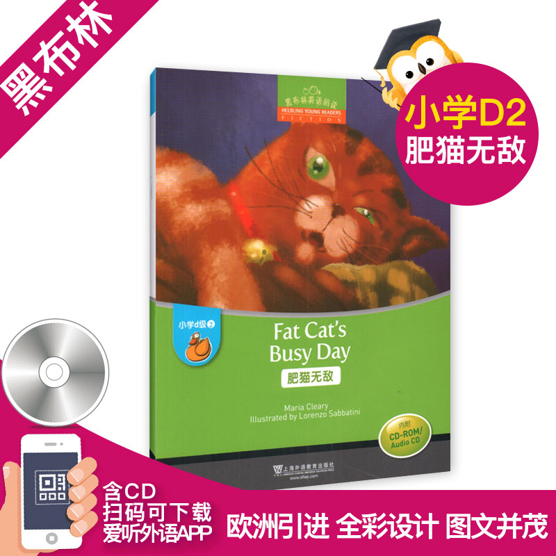 正版 肥猫无敌Fat Cat's Busy Day 黑布林英语阅读小学d级2 含光盘 小学生英语学习 少儿英语故事英文绘本 上海外语教育出版社