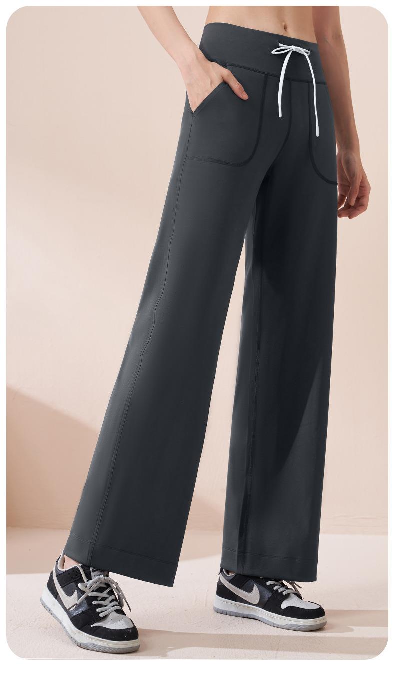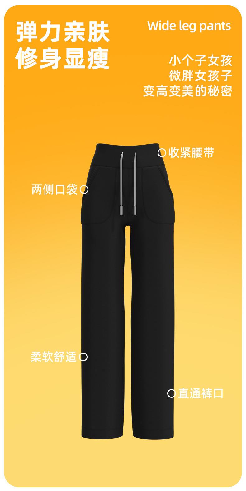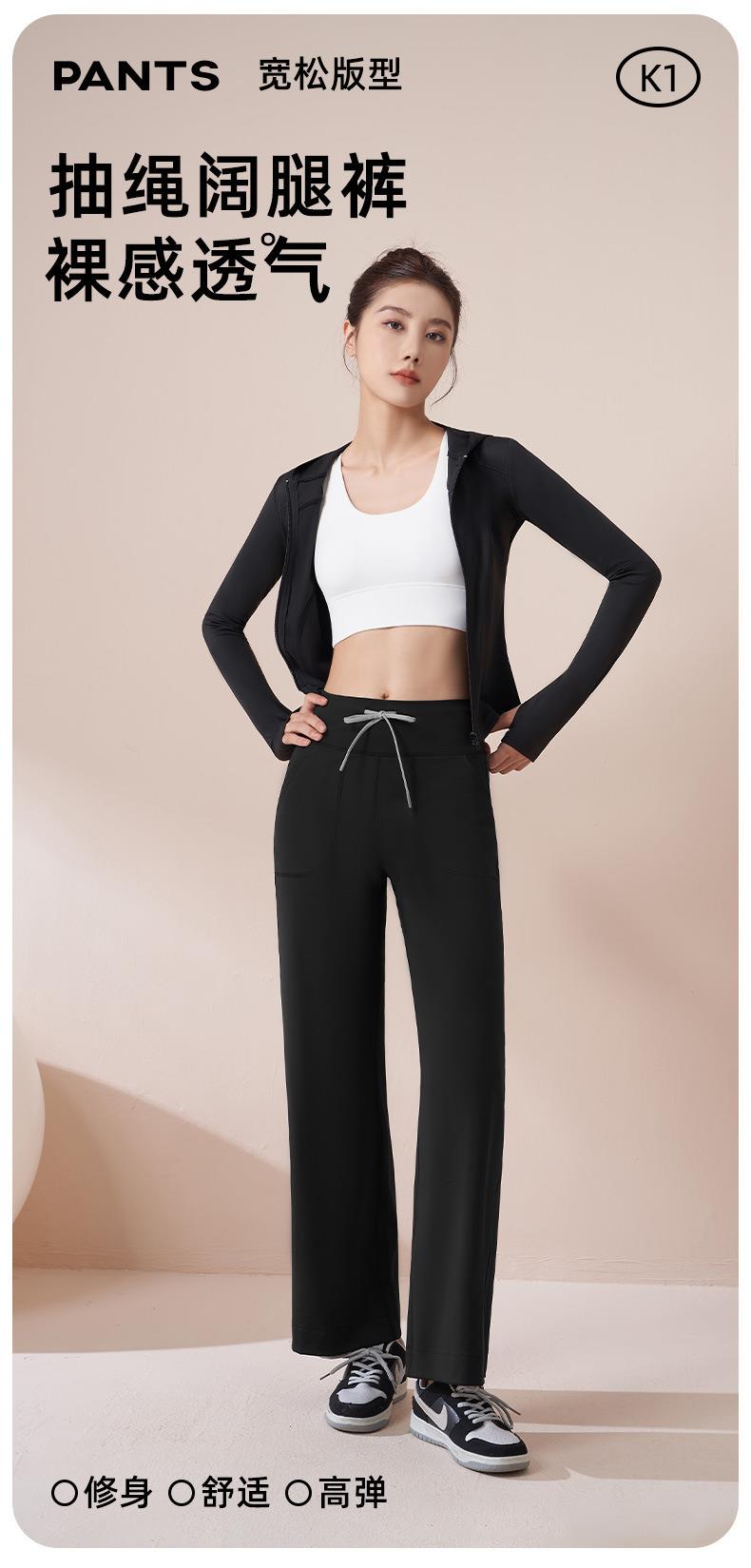 聚衣堂莱卡抽绳速干裸感休闲裤百搭街拍运动裤高弹无缝阔腿裤女