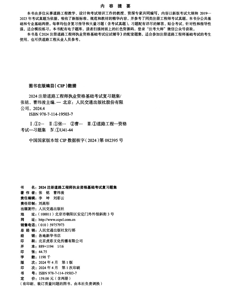 书名:2024注册道路工程师执业资格基础考试复习题集
