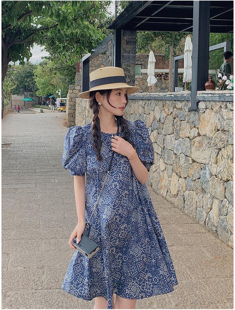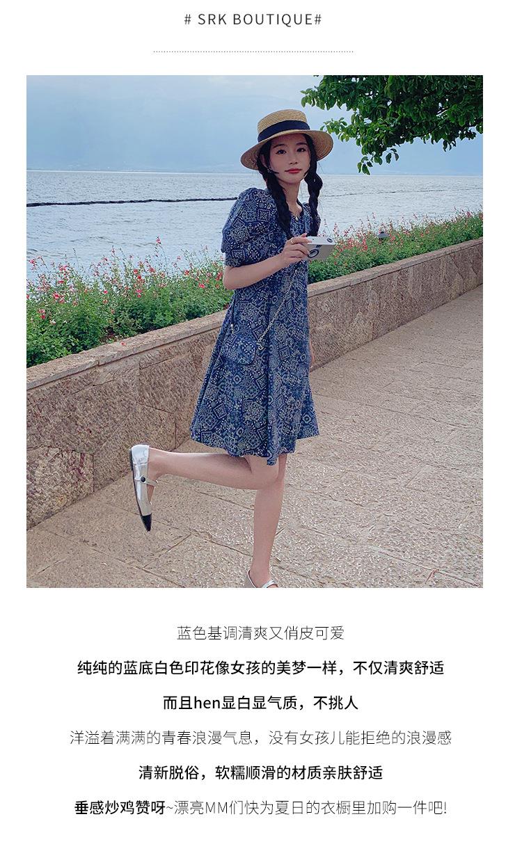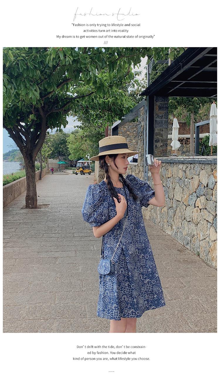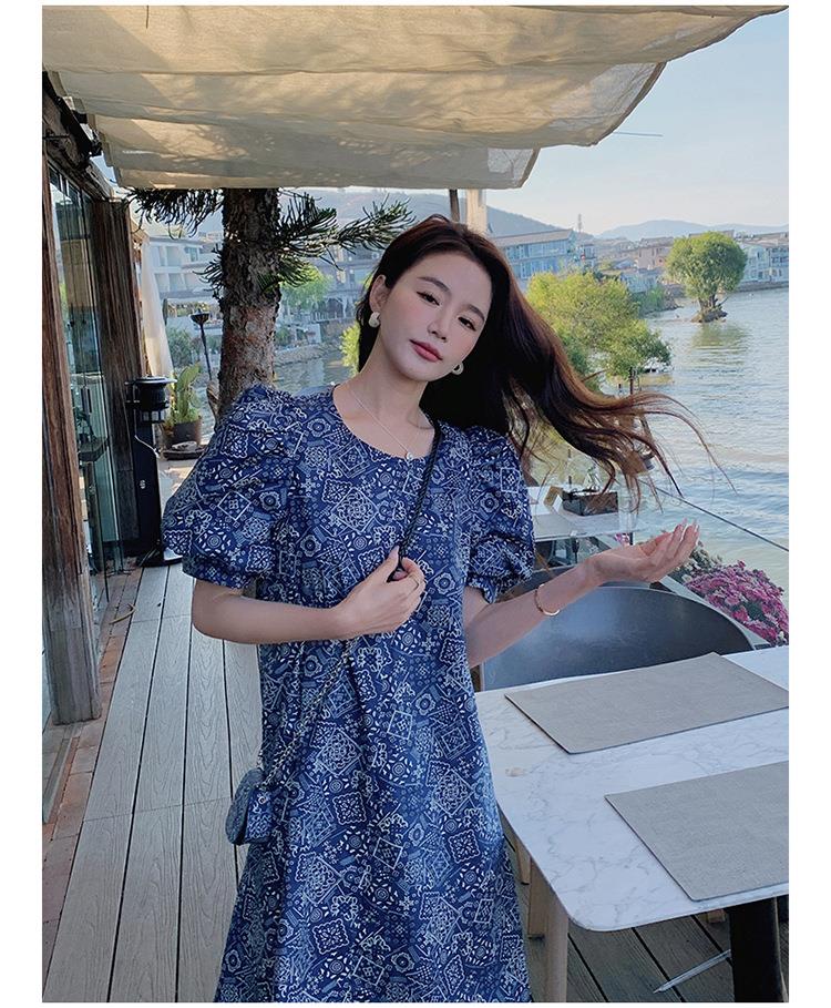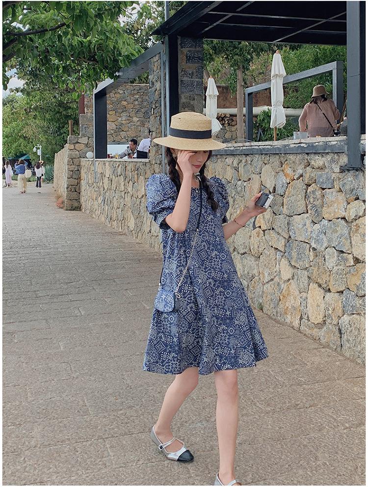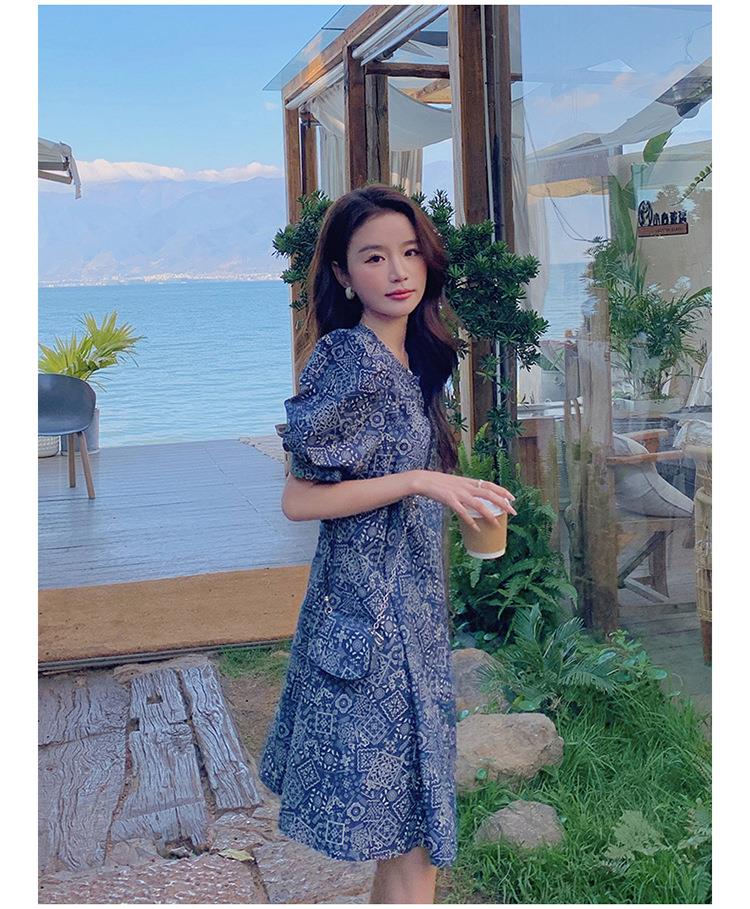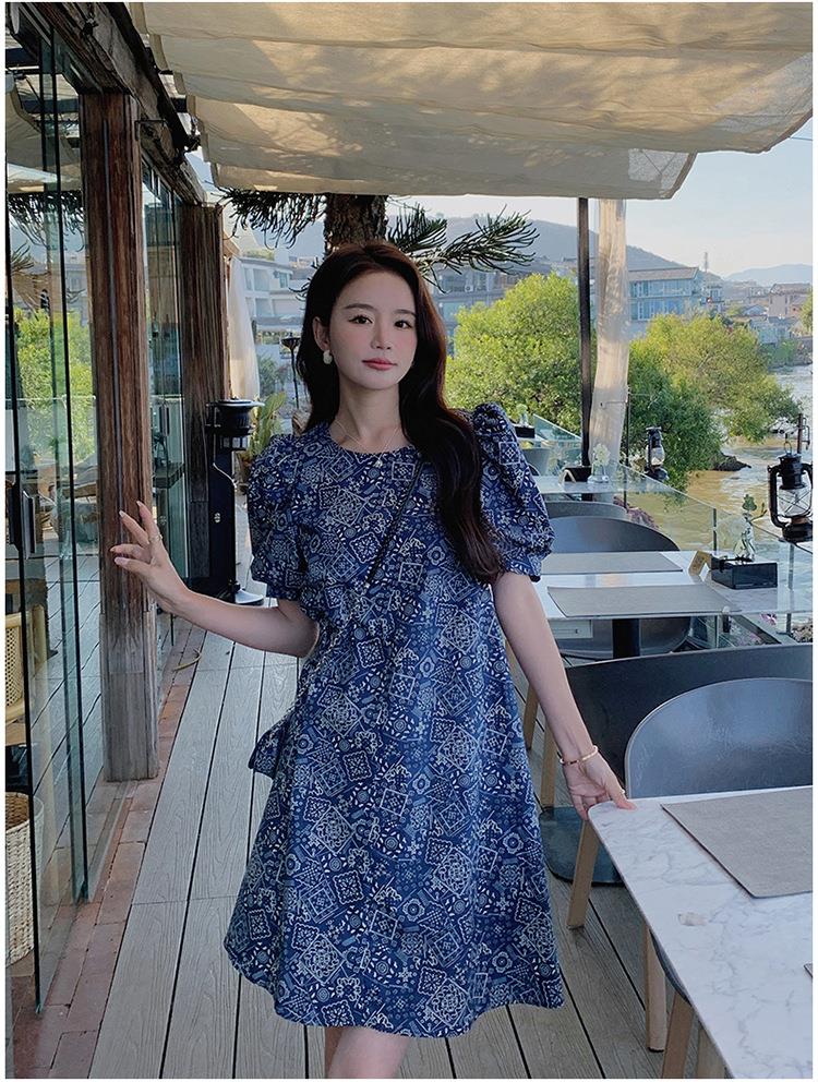 复古名族风印花连衣裙女装2023夏季新款小个子减龄中长款裙子配包