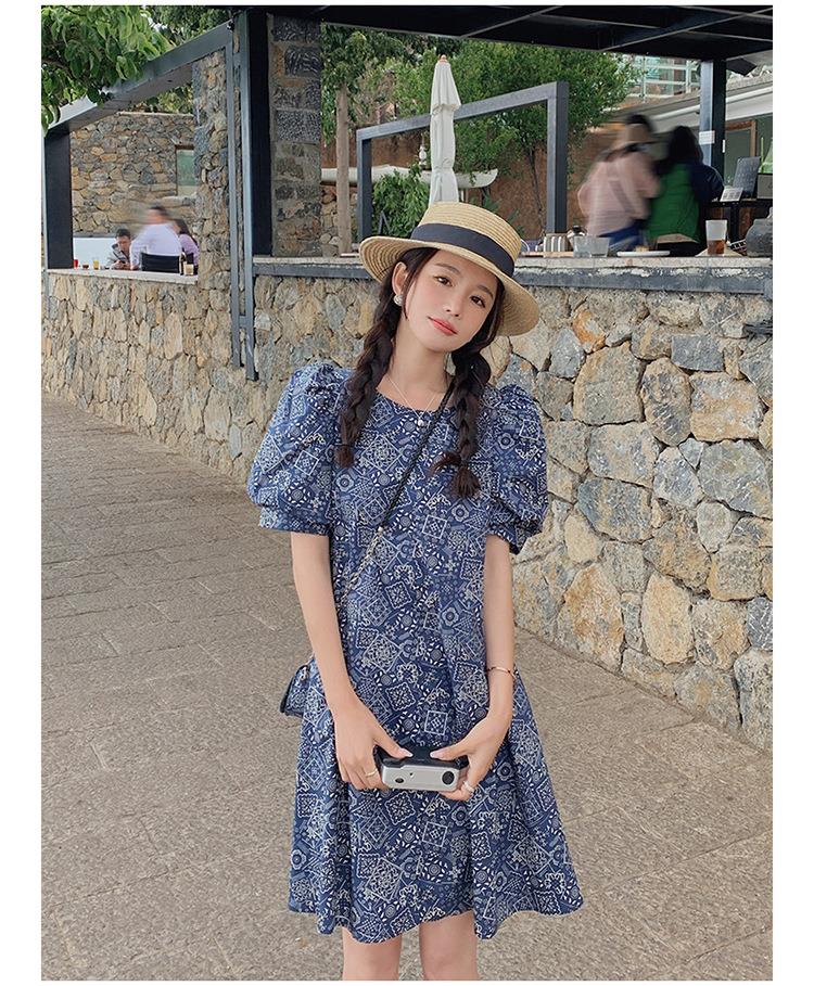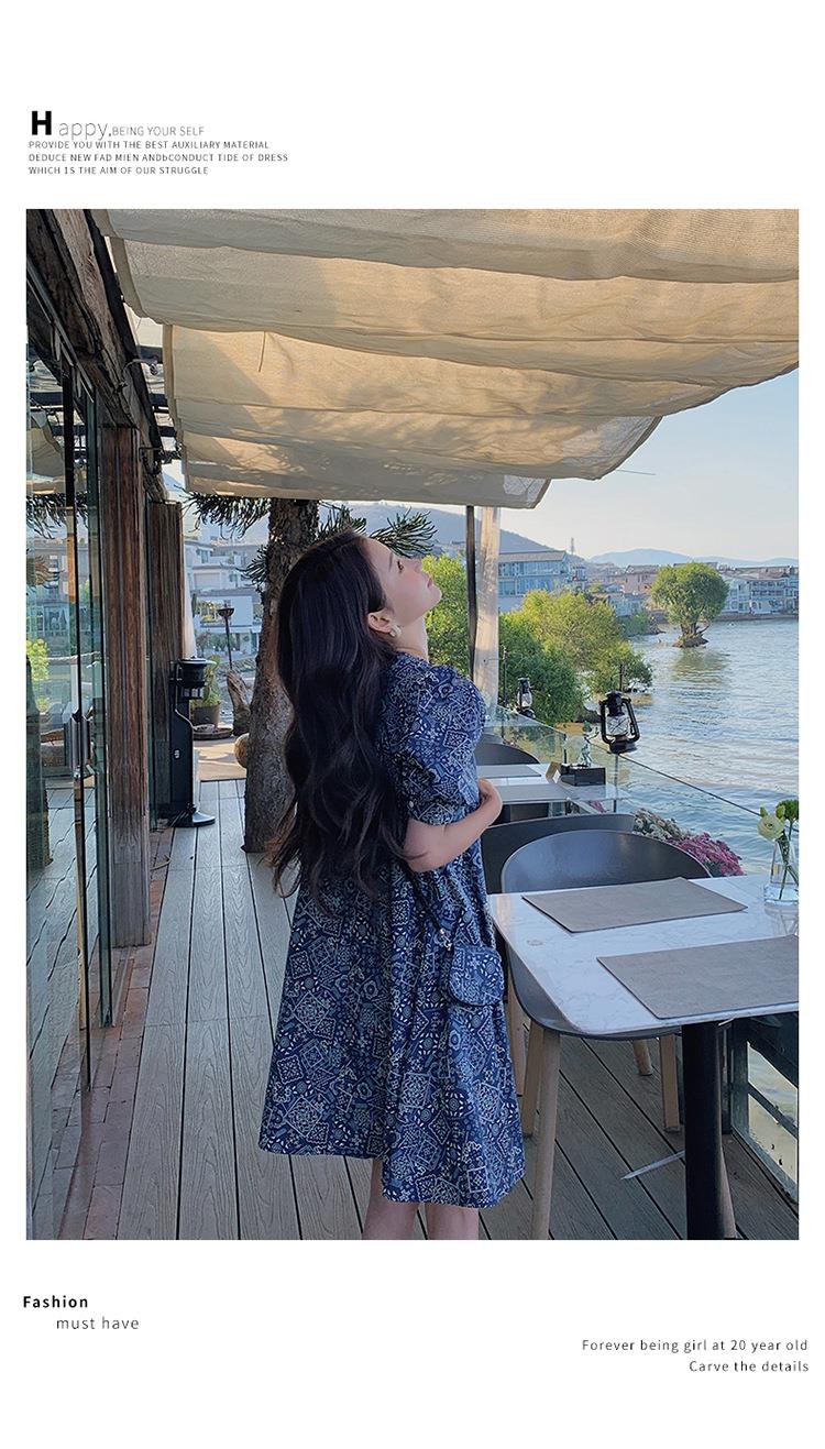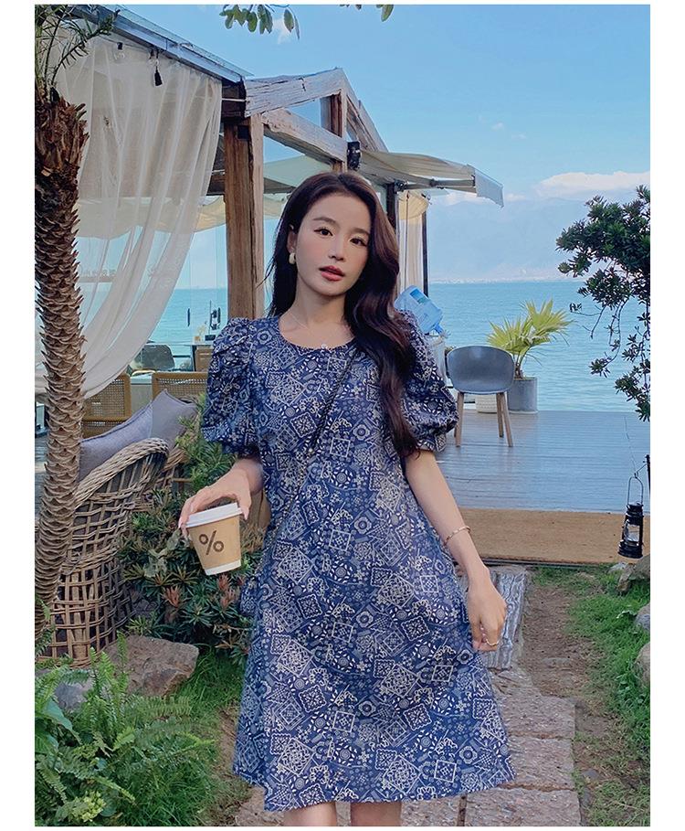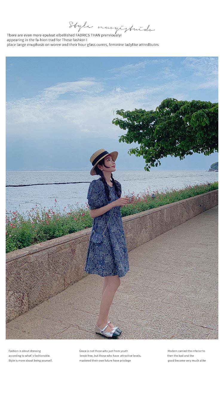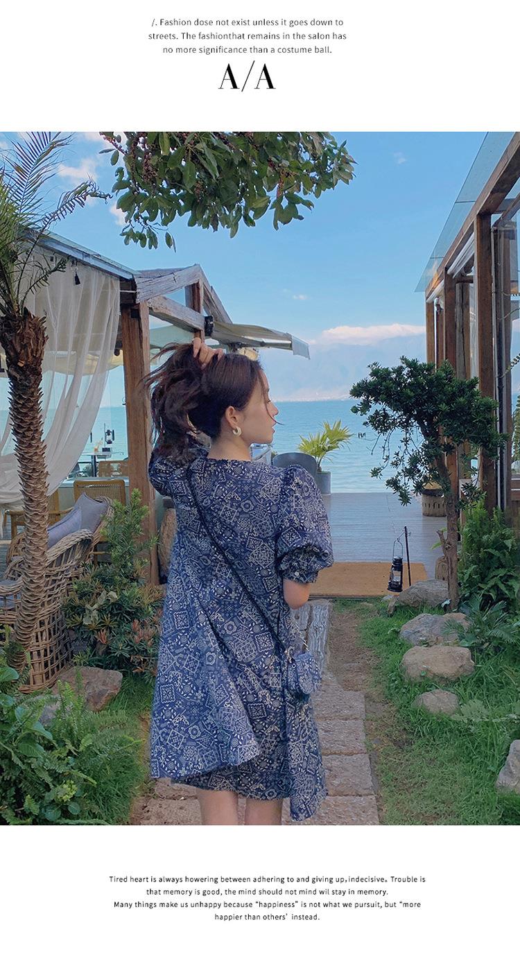 复古名族风印花连衣裙女装2023夏季新款小个子减龄中长款裙子配包
