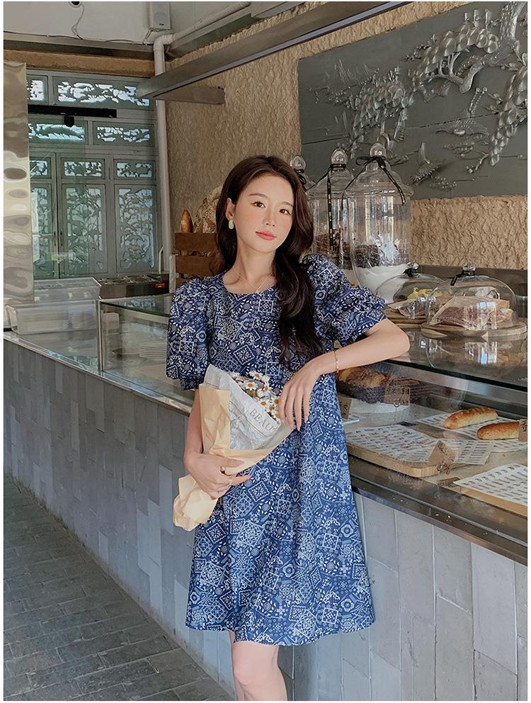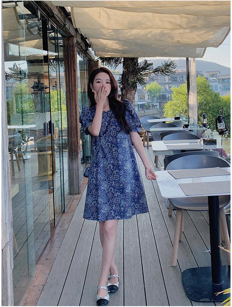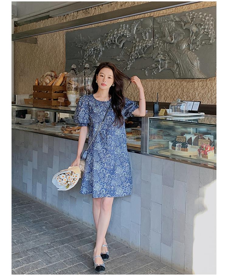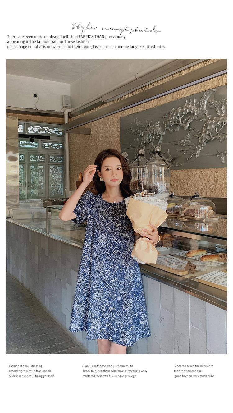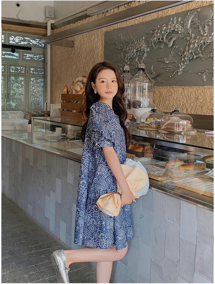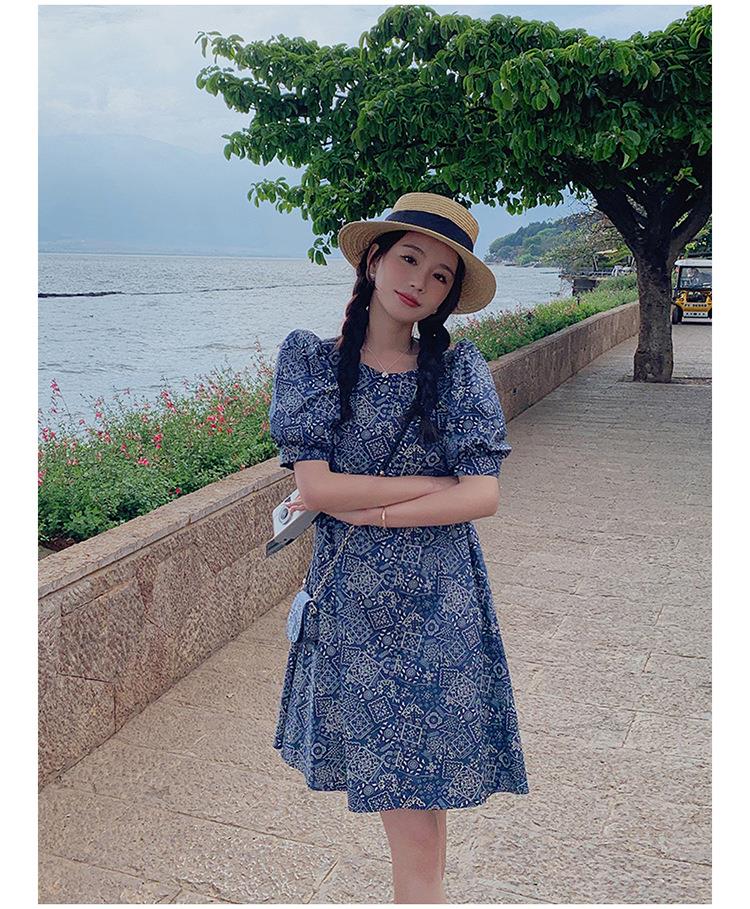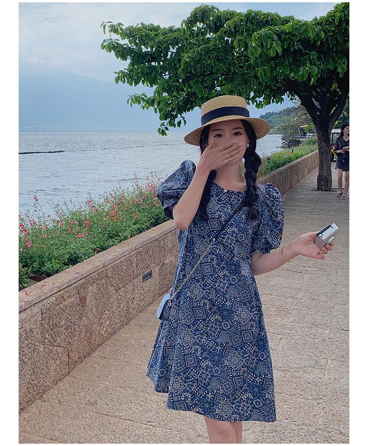 复古名族风印花连衣裙女装2023夏季新款小个子减龄中长款裙子配包