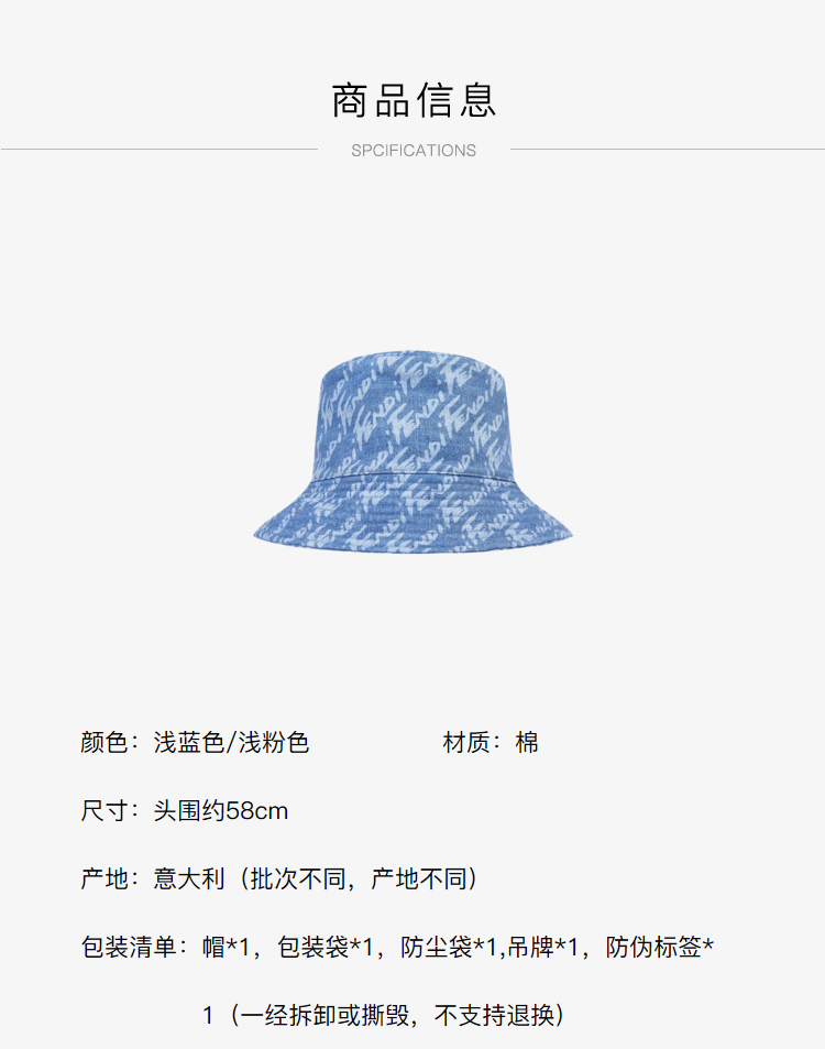 FENDI 芬迪 男女字母徽标老花渔夫帽 FXQ697 AK6P