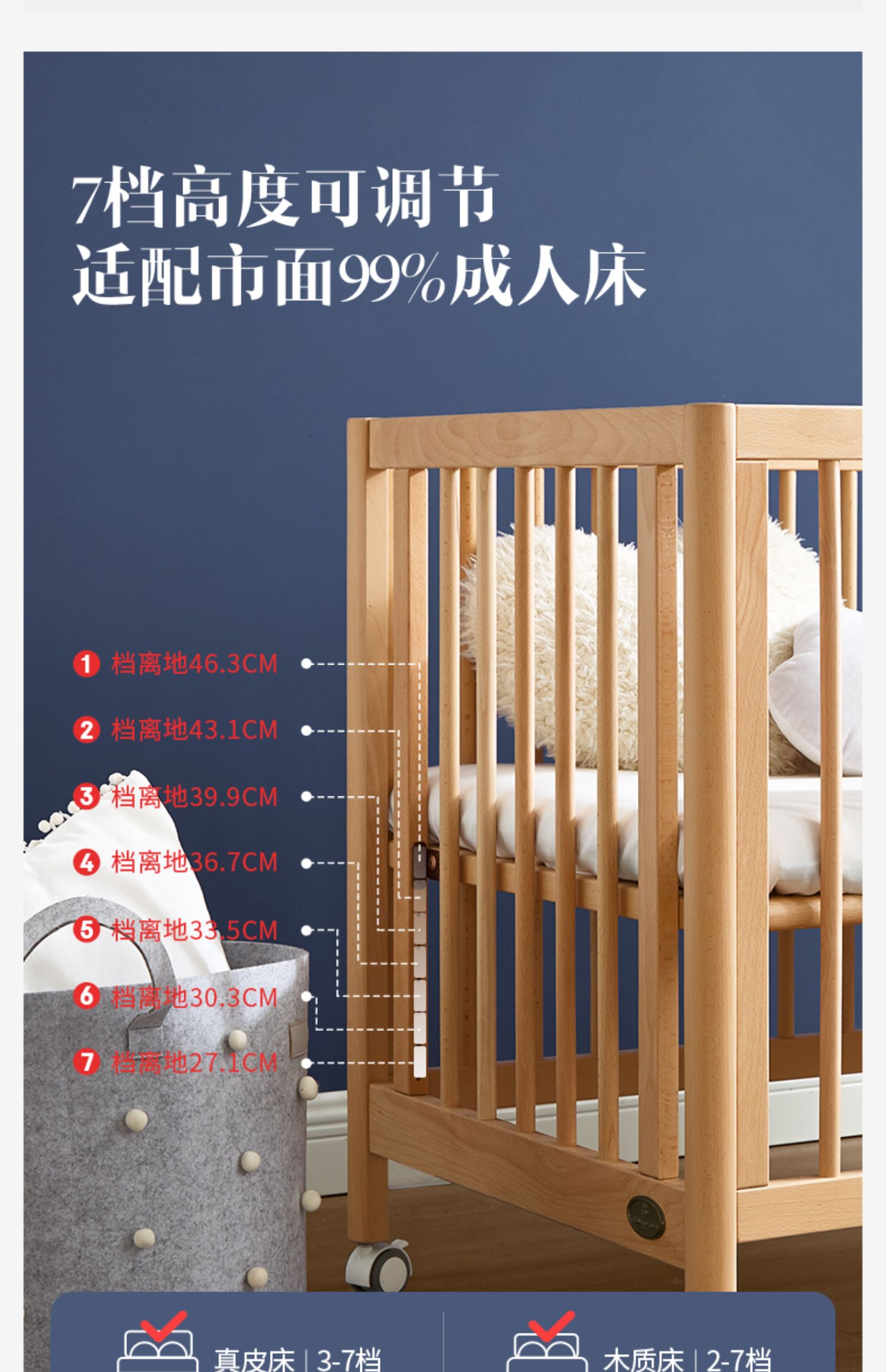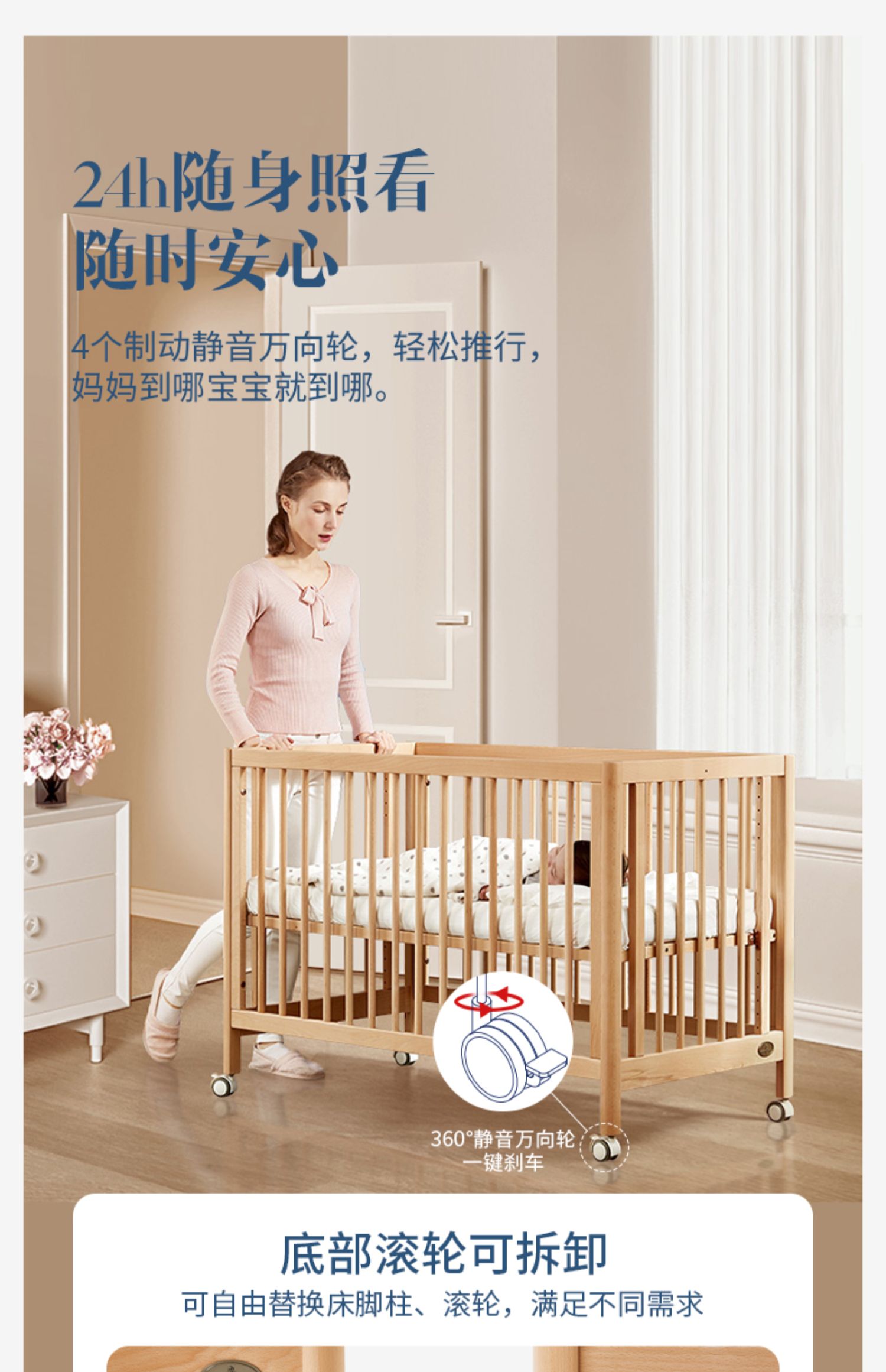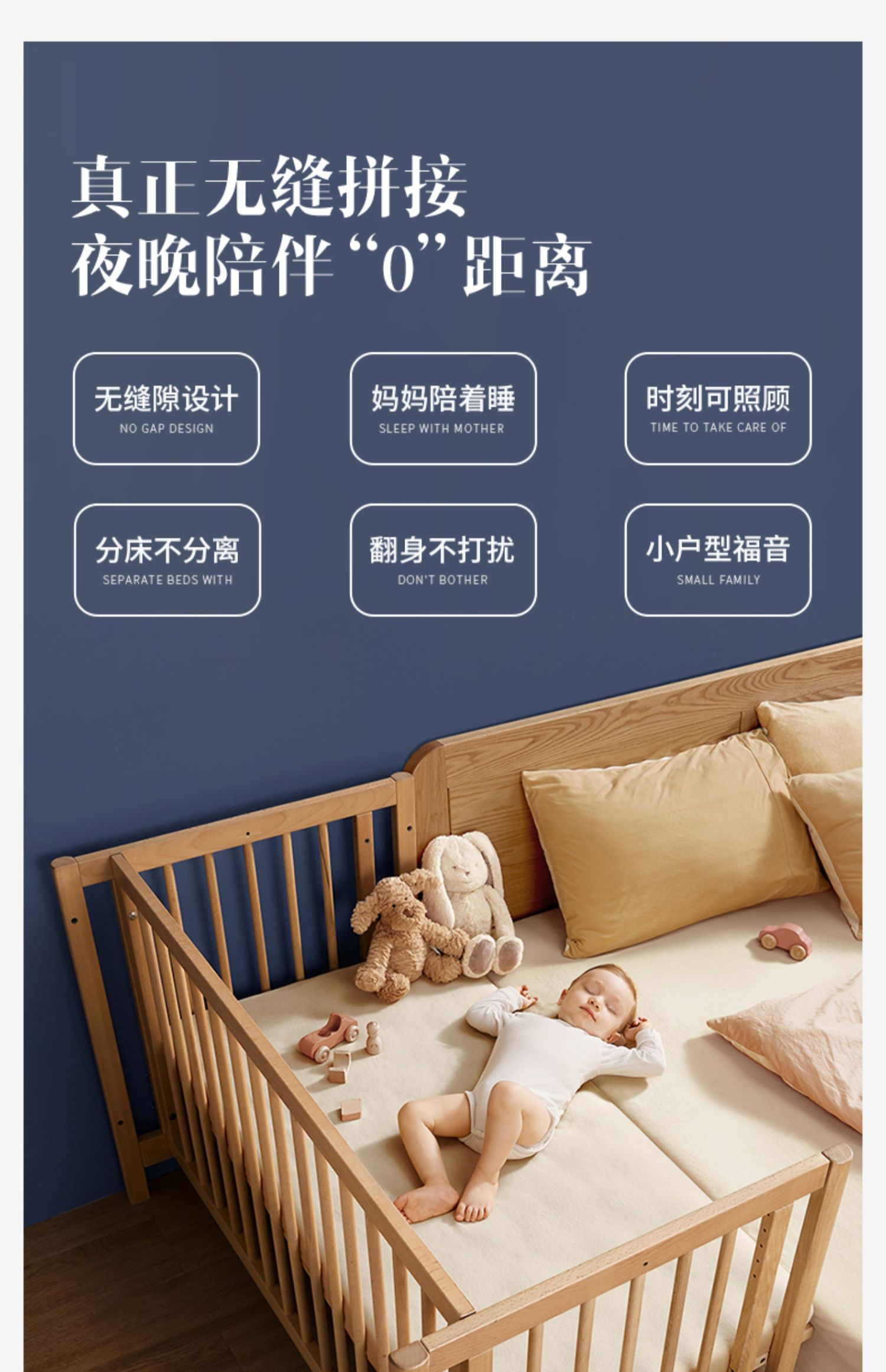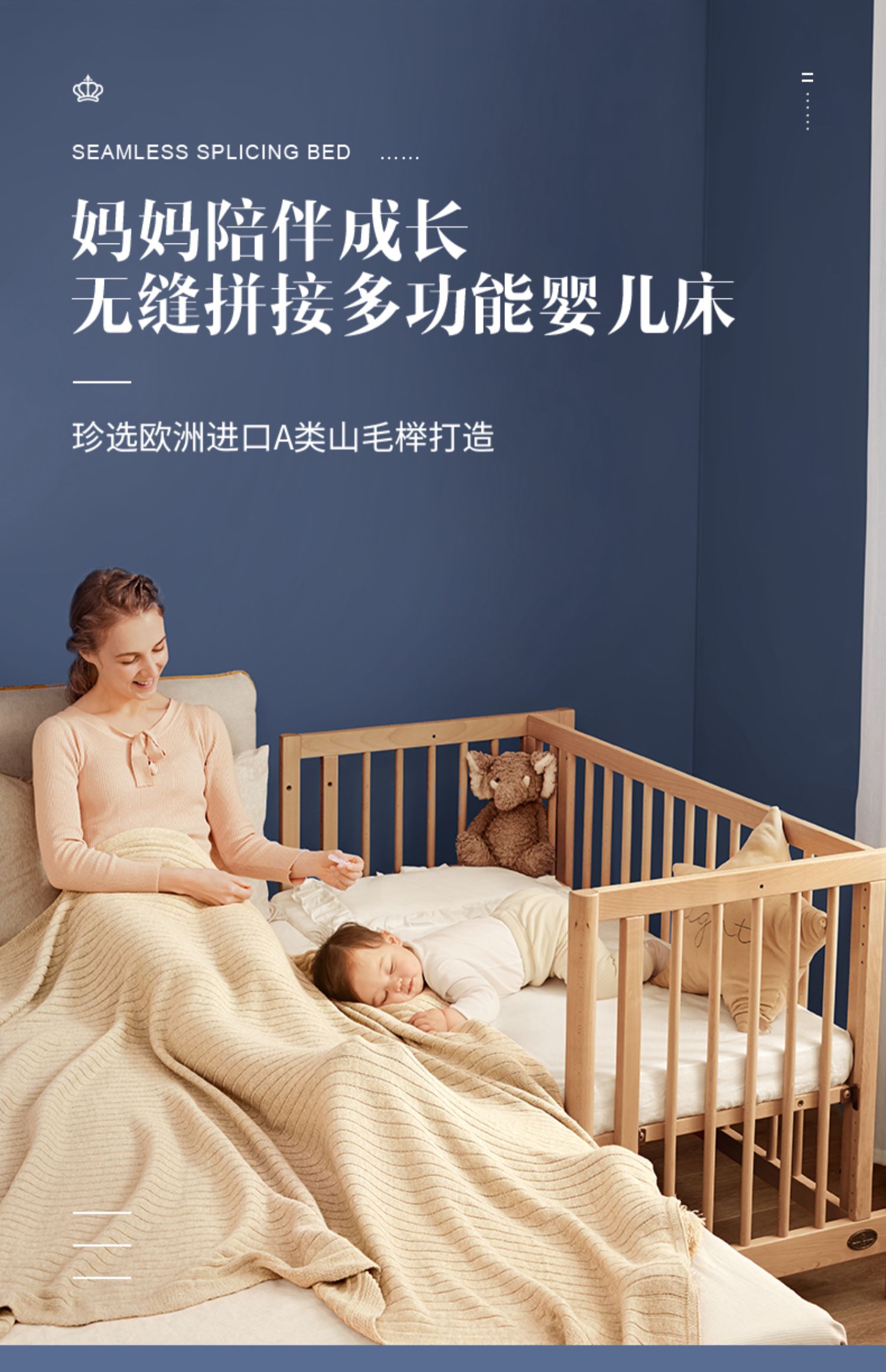 【加盟】蒂爱婴儿床儿拼接大床山毛榉木可移动新生小床儿童多功能床边实木