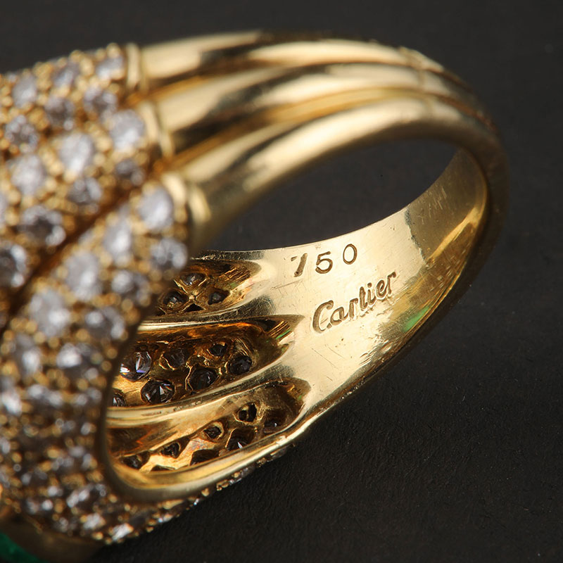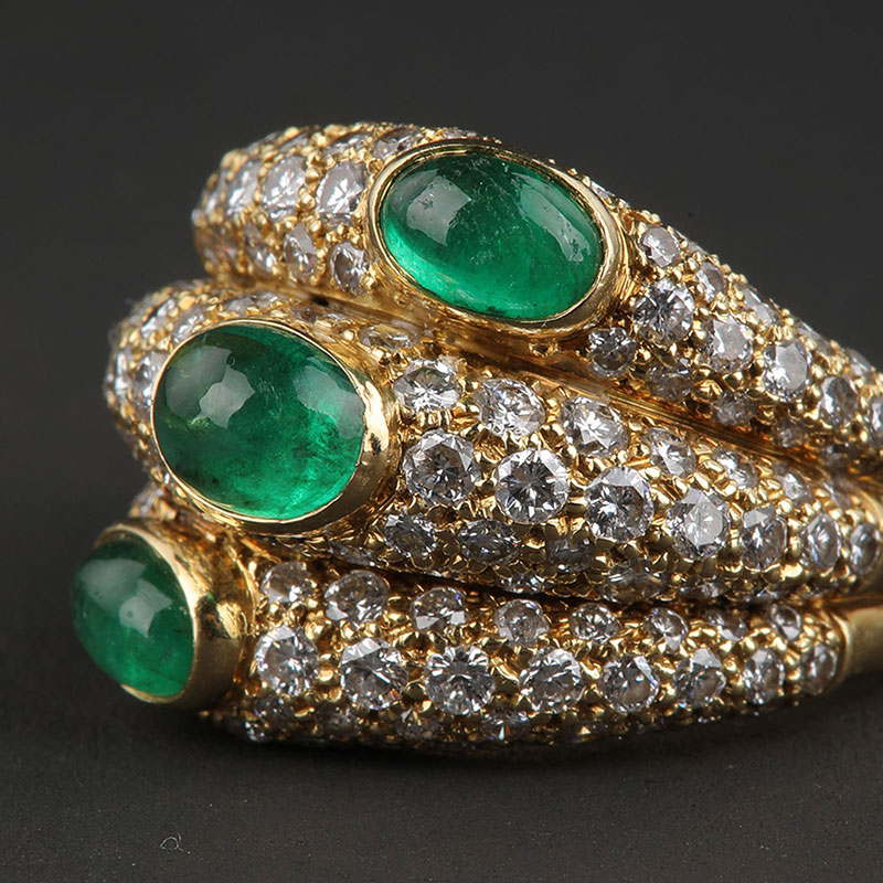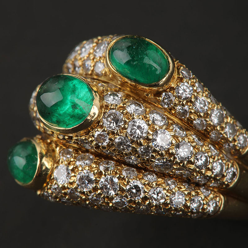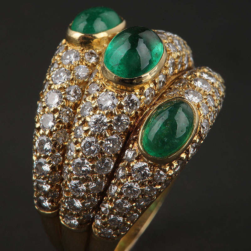 1980年代法国出品18K黄金镶嵌钻石祖母绿鸡尾酒戒指
