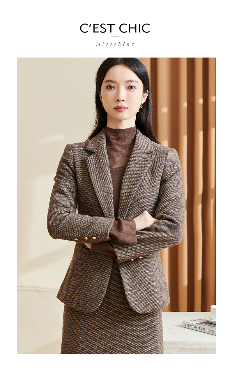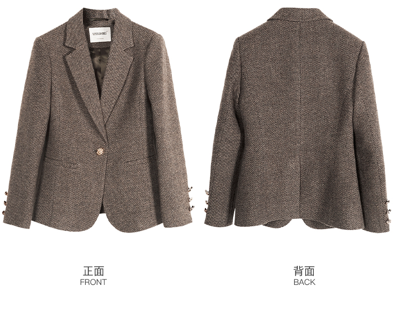 剩S/M 米思阳2026春季新款通勤商务风西装毛呢合身一粒扣羊毛外套女2930