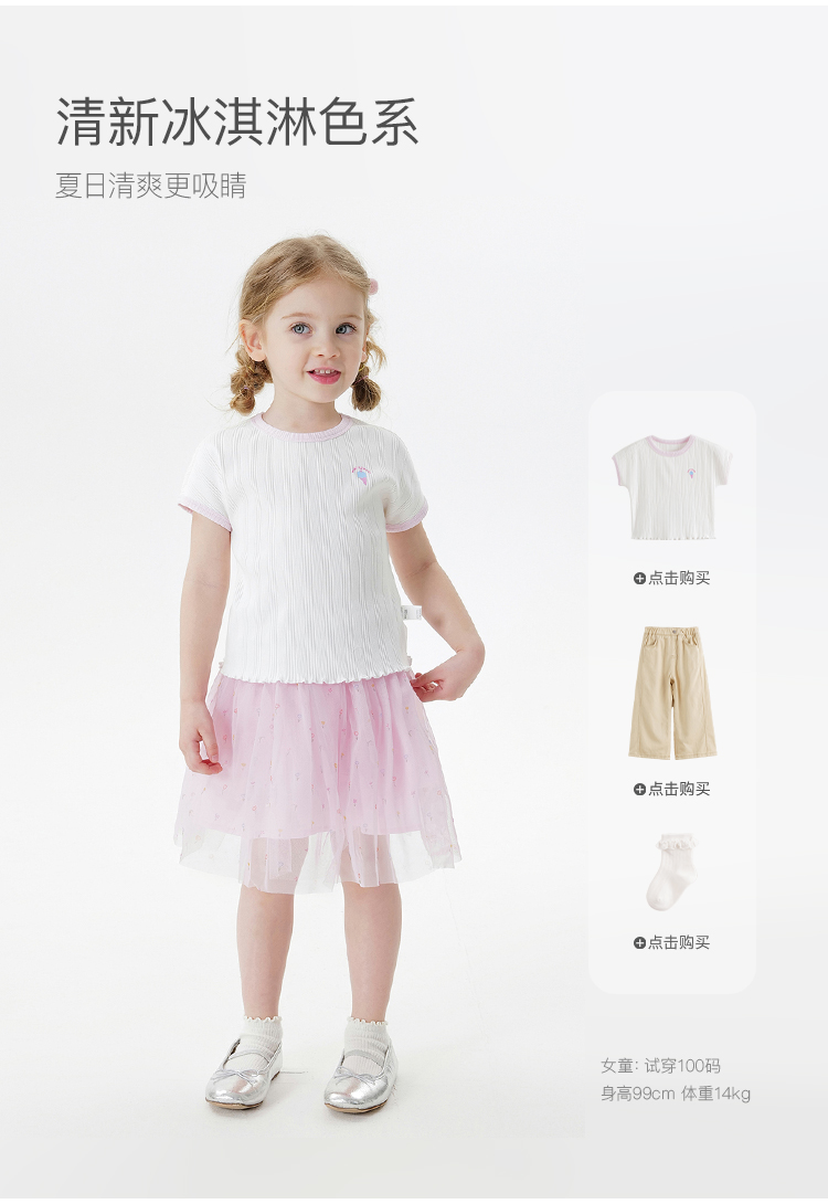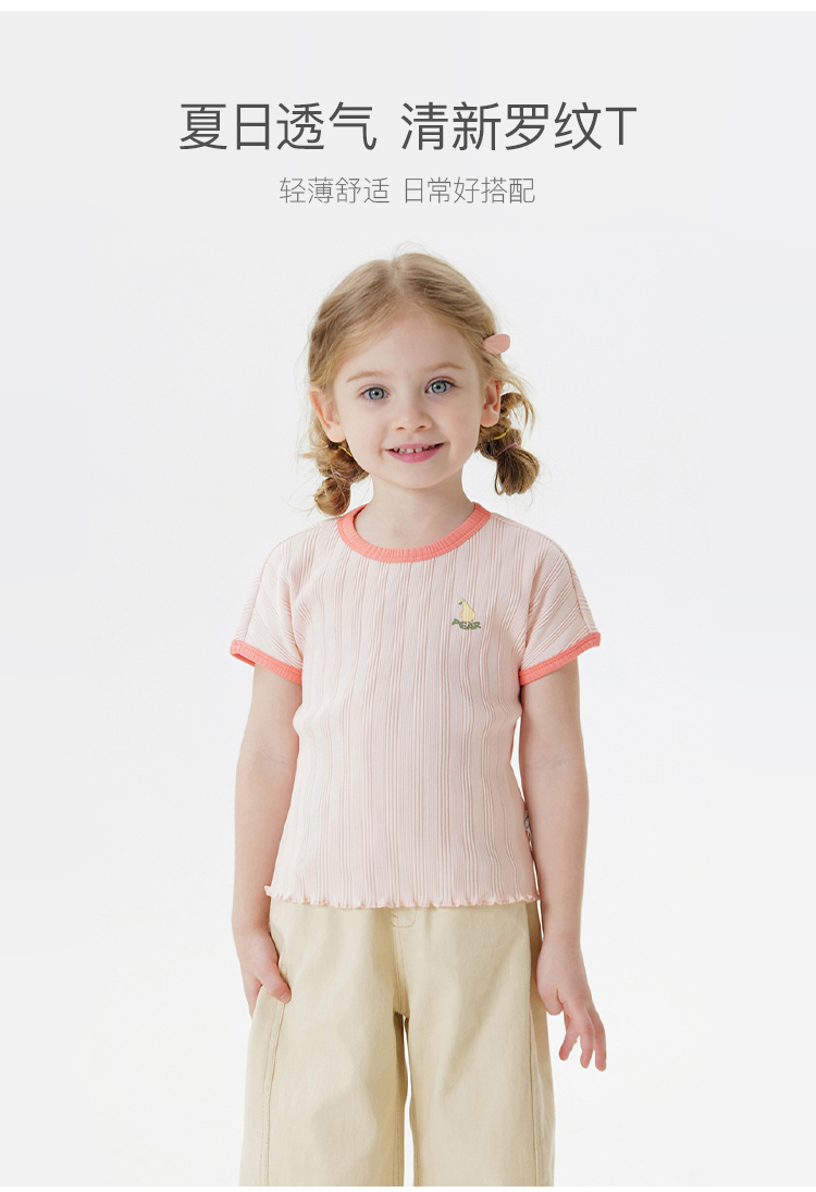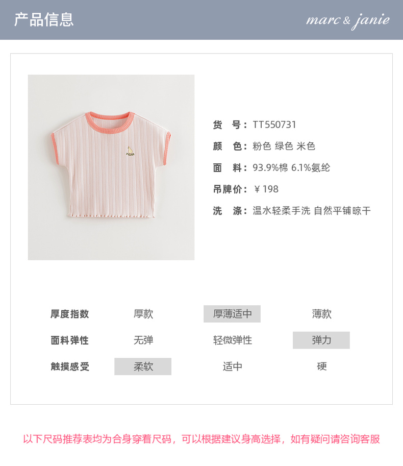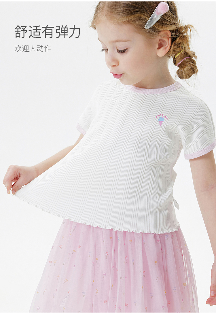 【软弹】马克珍妮女童亲肤撞色短袖T恤 宝宝上衣夏装新款550731