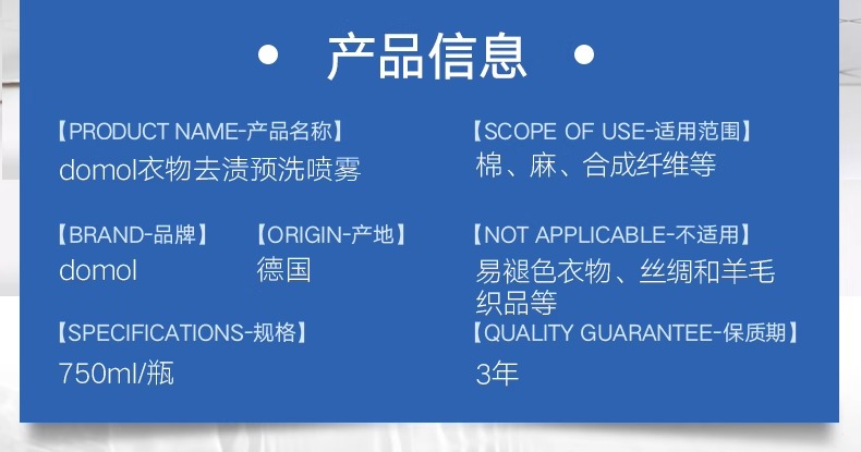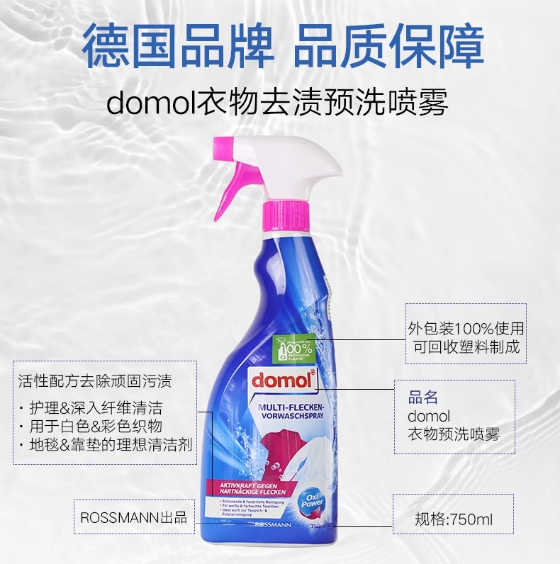 【中欧班列精选】德国衣领净去污喷雾 原装进口ROSSMANN/domol 衣领净去污去黄预洗喷雾750ml/瓶