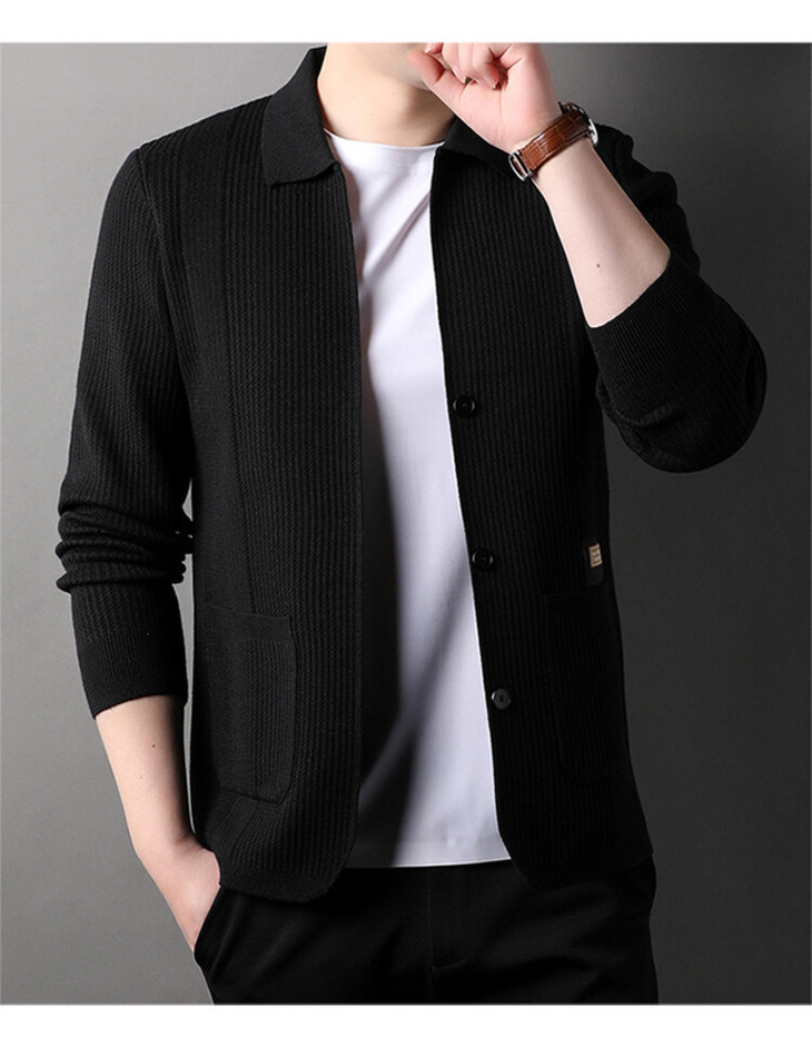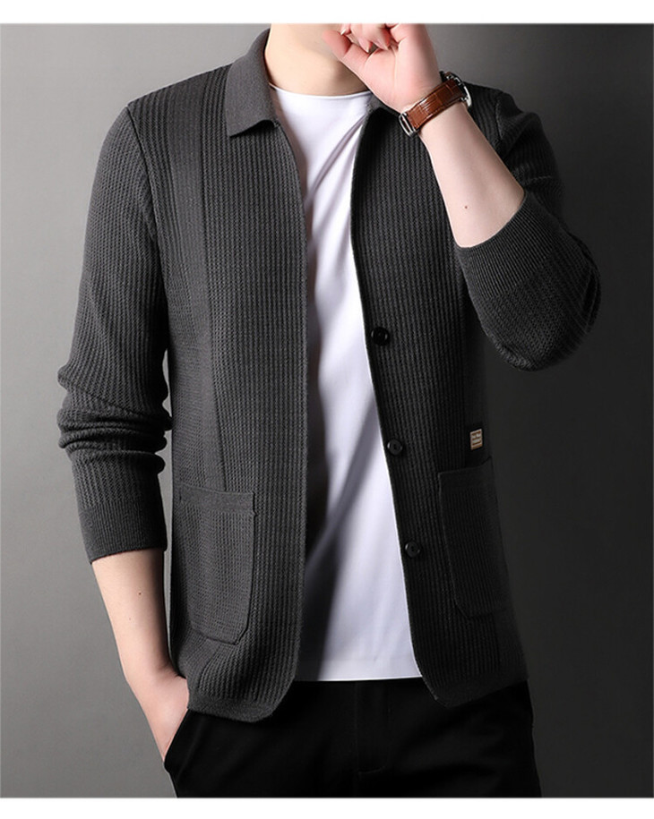 新款春秋季男士针织开衫毛衣外套休闲纯色简约百搭上衣男装