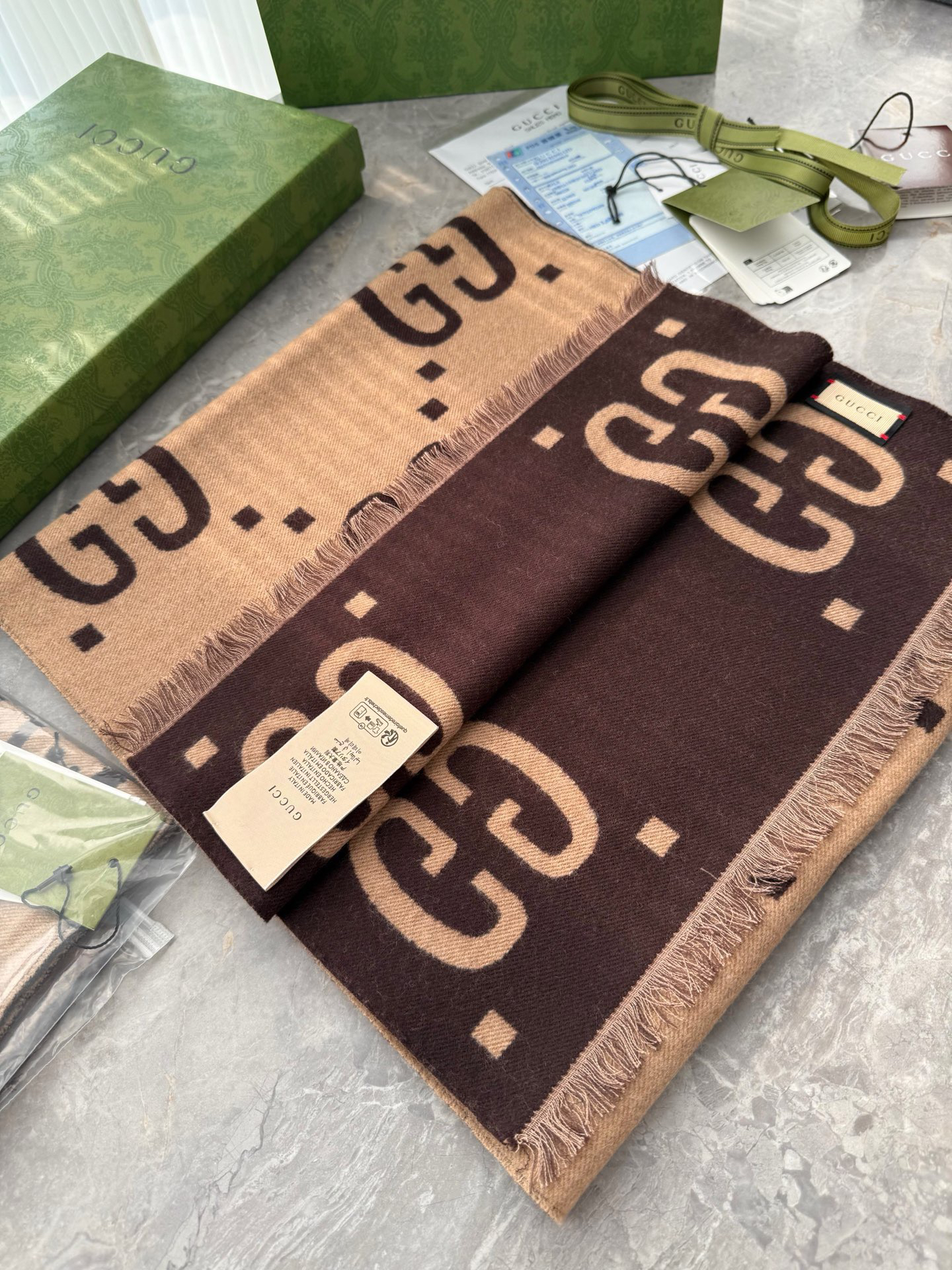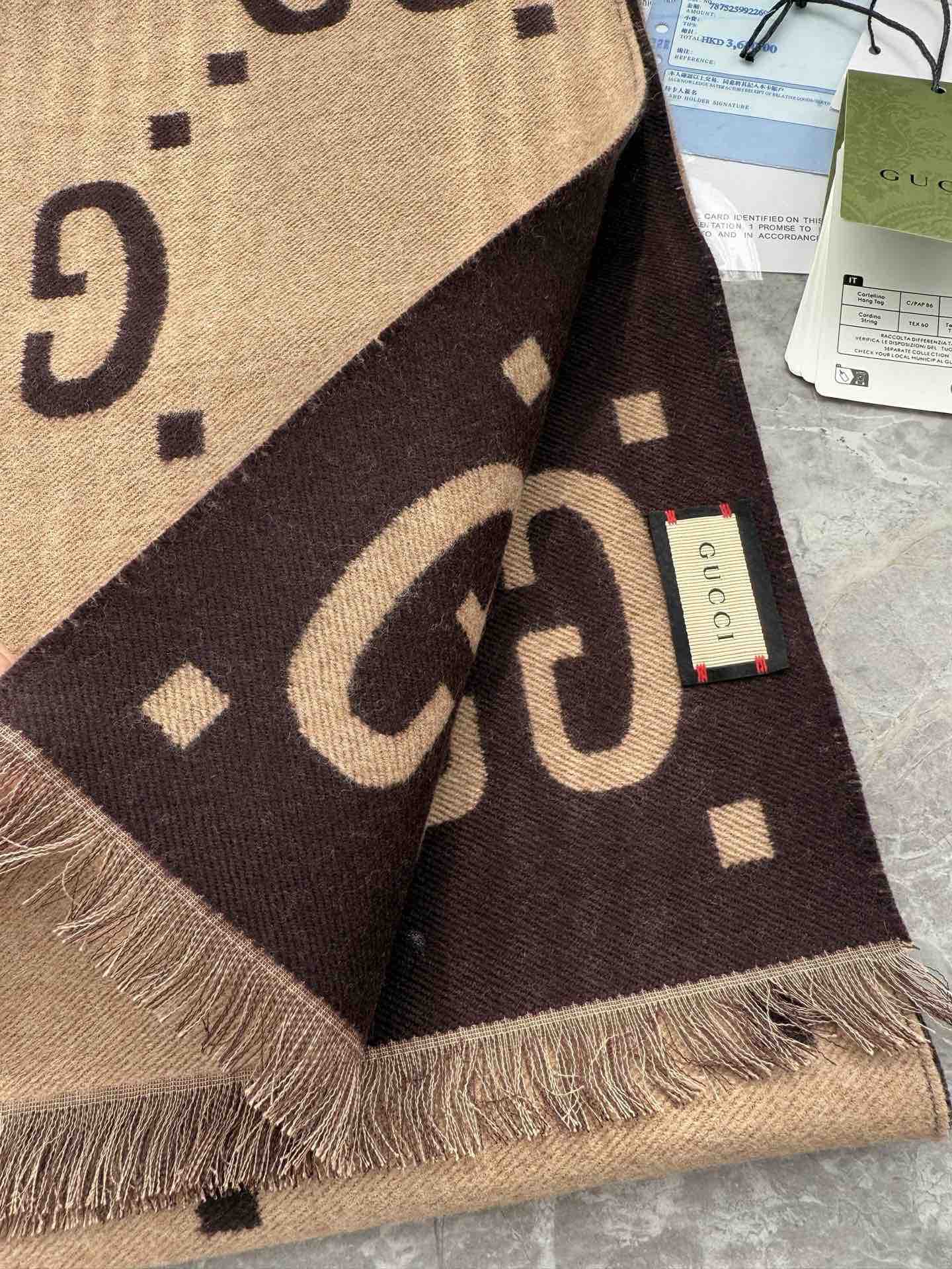 秋冬特惠💰150 古驰围巾 图案真的超级好看啊~就喜欢这种GG腔调!面料是强捻精纺双面真丝羊绒,非常工整精致的面料,呈现出极具力度的线面结构,极具支撑力及柔韧性!规格:55*180cm