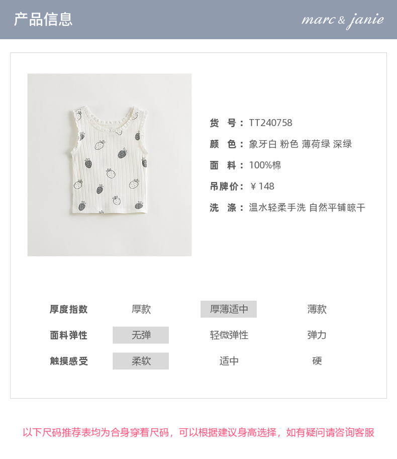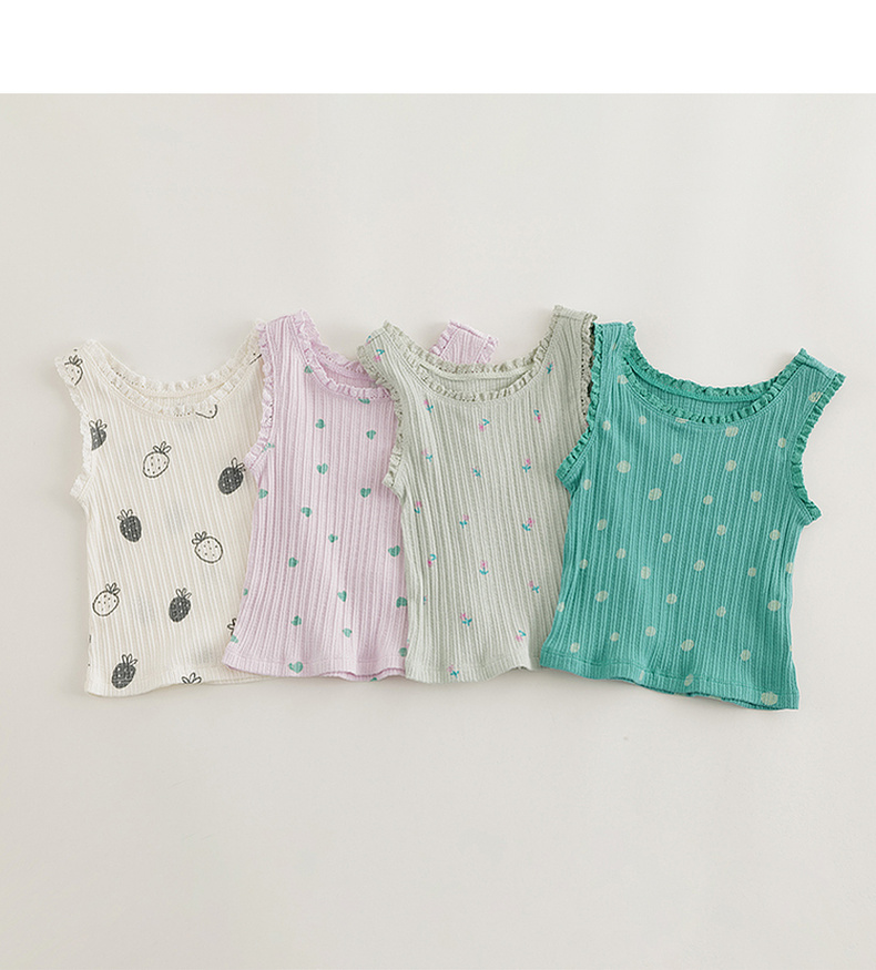 马克珍妮2024年夏装新款 女童甜美爱心满印罗纹纯棉背心 240758