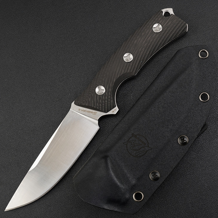 全长:24cm ,刃长:11.5cm ,刃厚:4.6mm ,刃材质:VG10钢,手柄:碳纤手柄,配备战术K鞘。