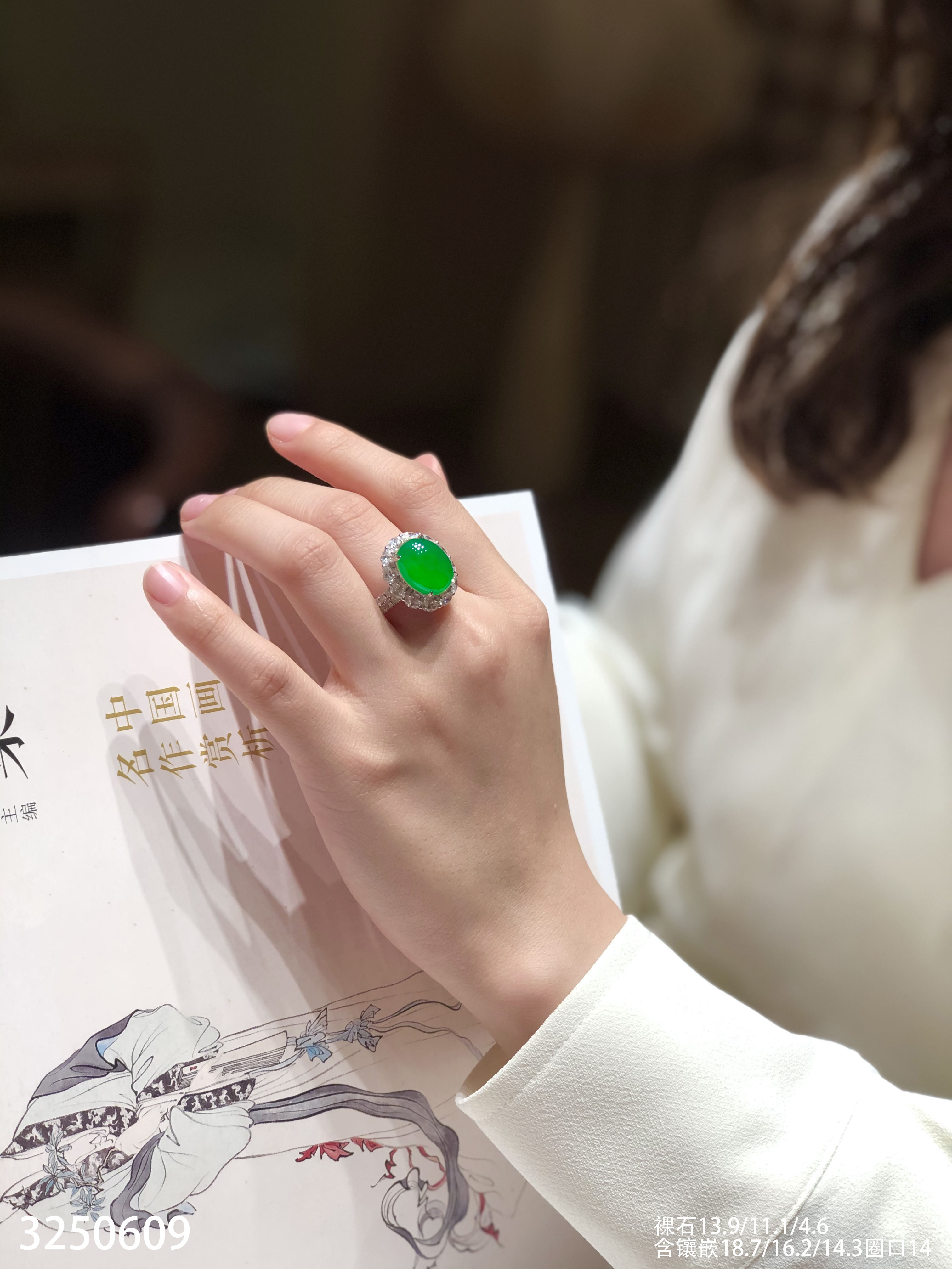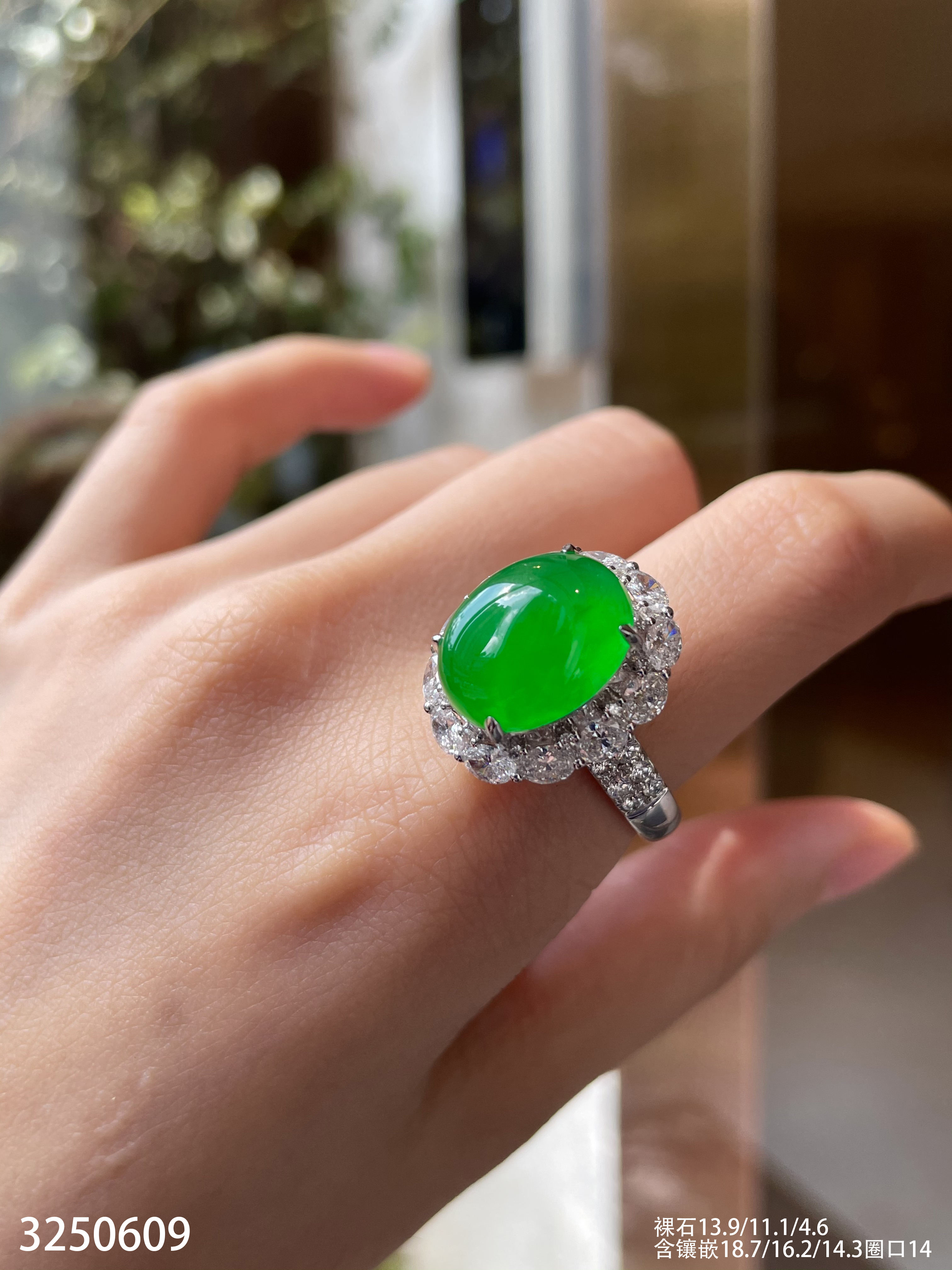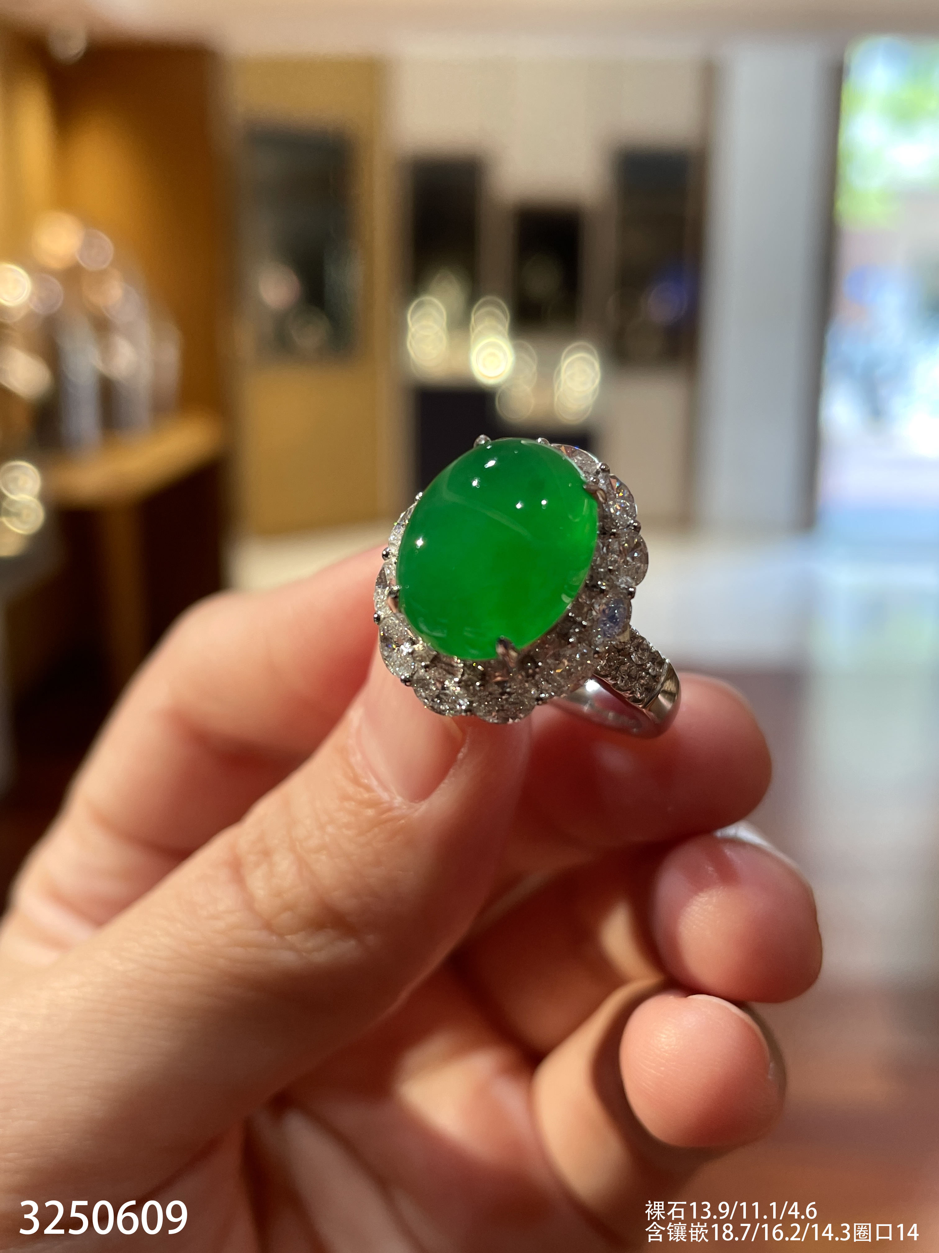 老坑玻璃种艳绿蛋面戒指【3250609】具体价格微信咨询