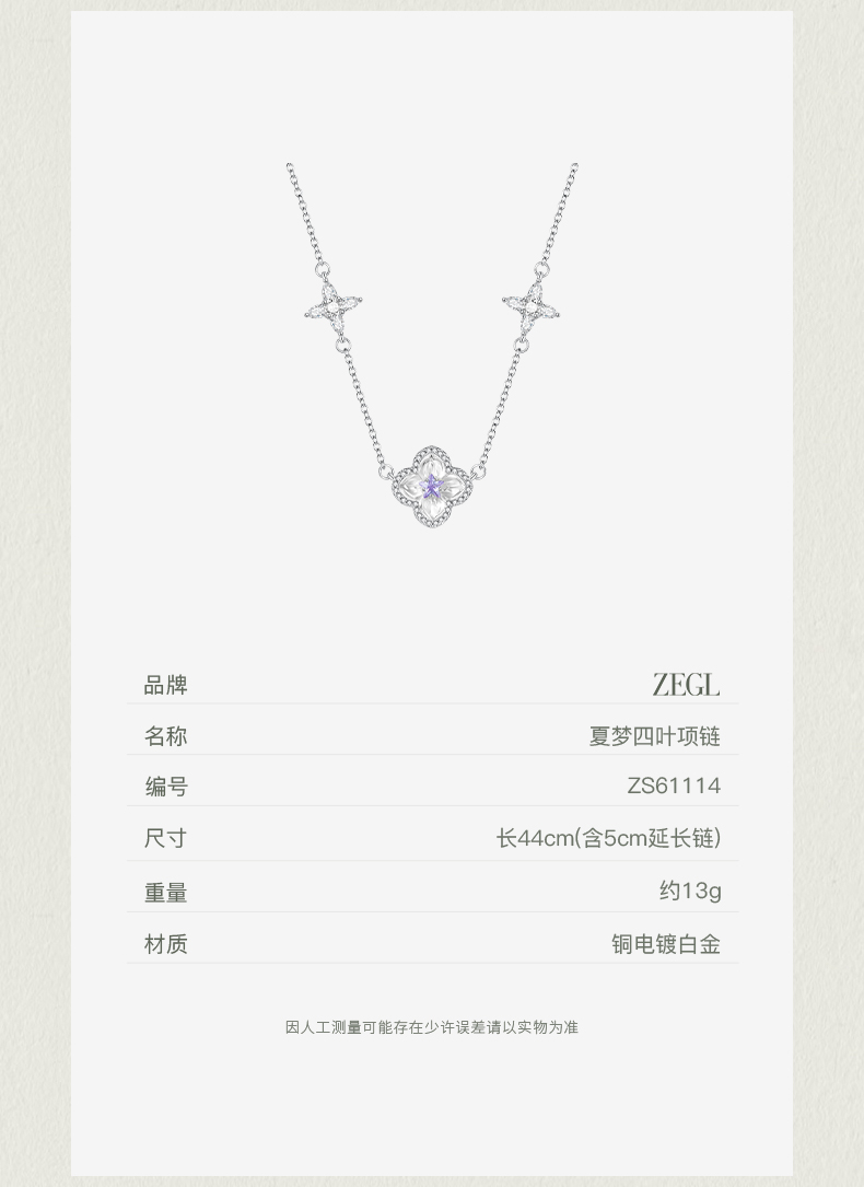 ZEGL星露系列四叶草锁骨链女款2025新款夏日小项链日常百搭配饰品