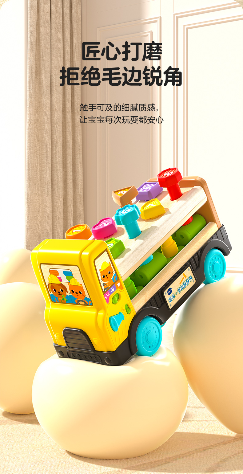 新品伟易达源木卡车敲敲乐早教益智手眼协调打地鼠敲打台儿童玩具