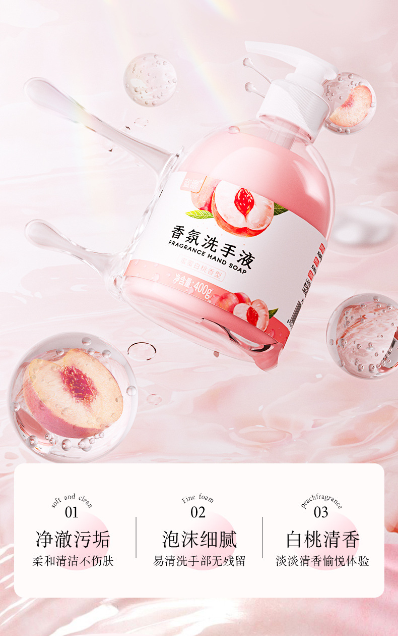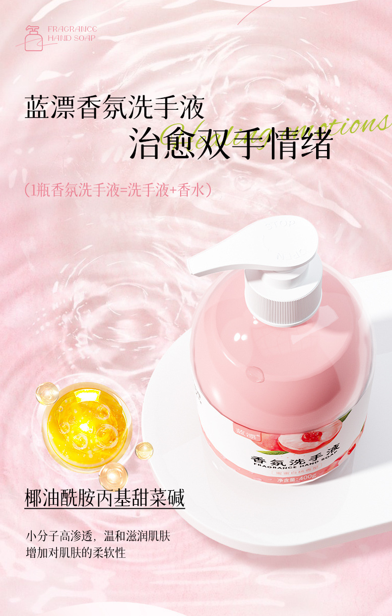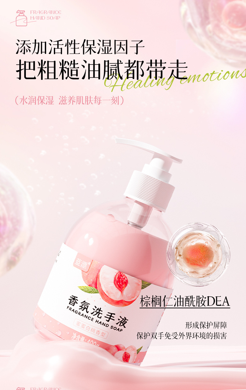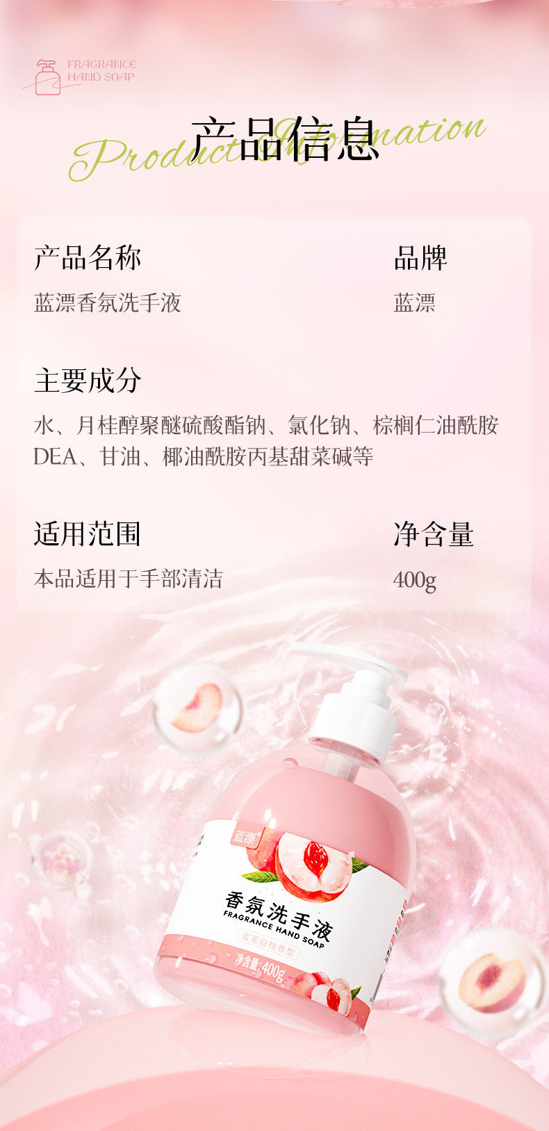 「9.9包邮!蜜蜜白桃香」蓝漂新品蜜桃香型中性洗手液400ML 家庭商场学校居家日用