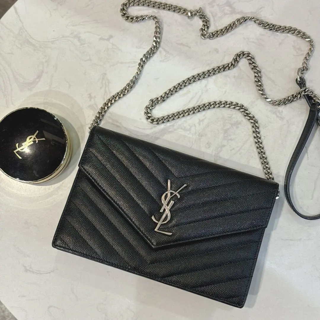 【商品详情】正品二手 YSL 小号 黑金 鱼子酱 牛皮 信封包✉️95新 19*12。百搭时髦