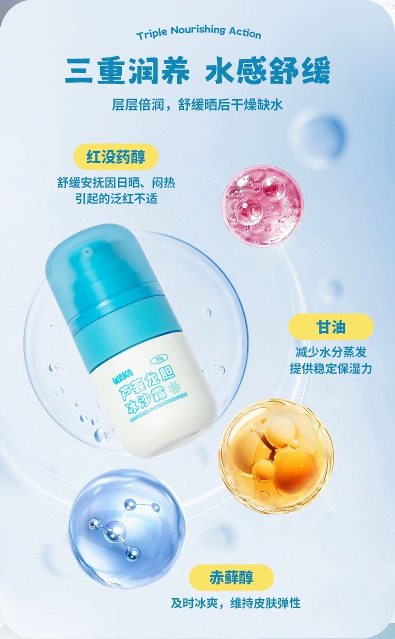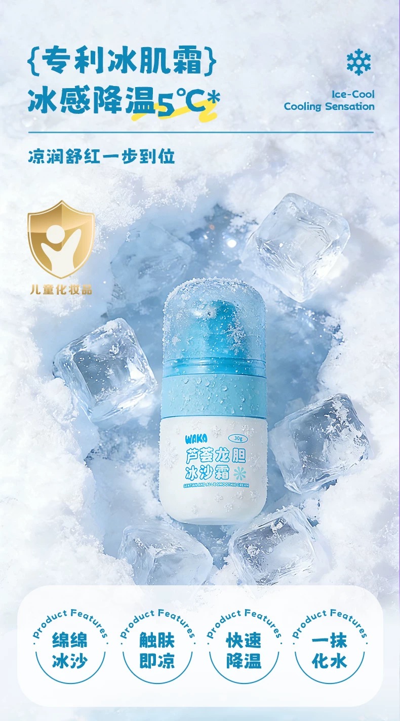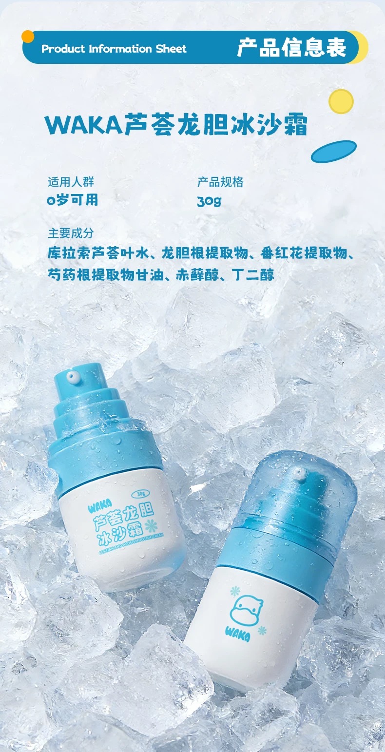 WAKA儿童冰沙霜芦荟龙胆降温凉凉霜清爽面霜春夏补水保湿晒后舒缓