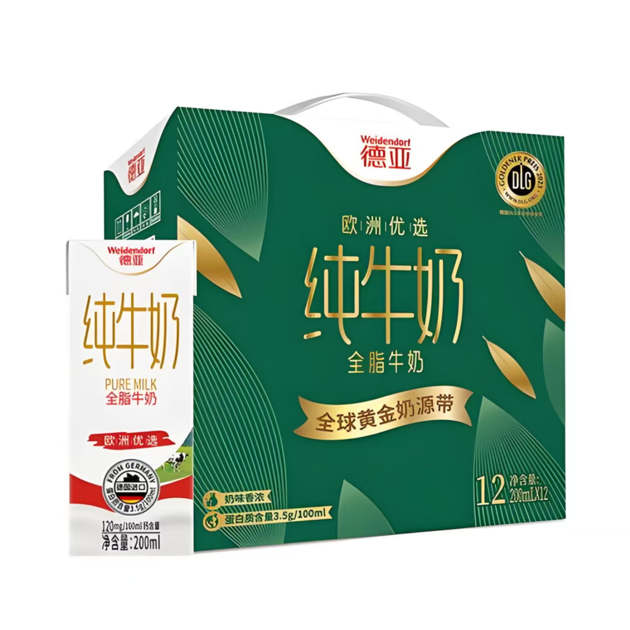 德亚欧洲优选(黄金奶源带)全脂纯牛奶礼盒200ml*12/盒