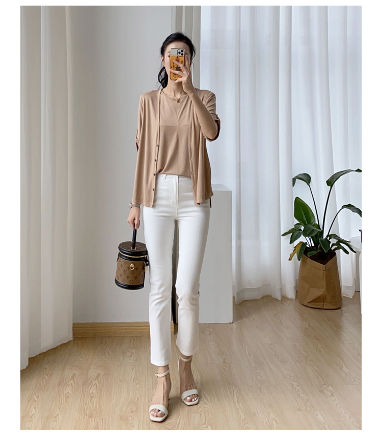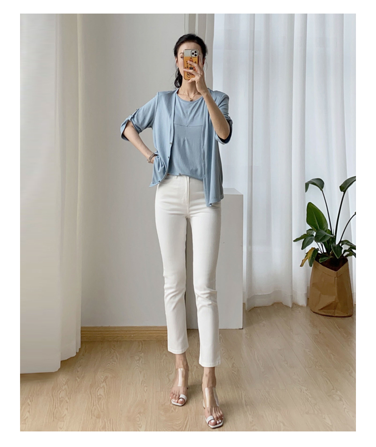 夏季薄款白色九分牛仔裤