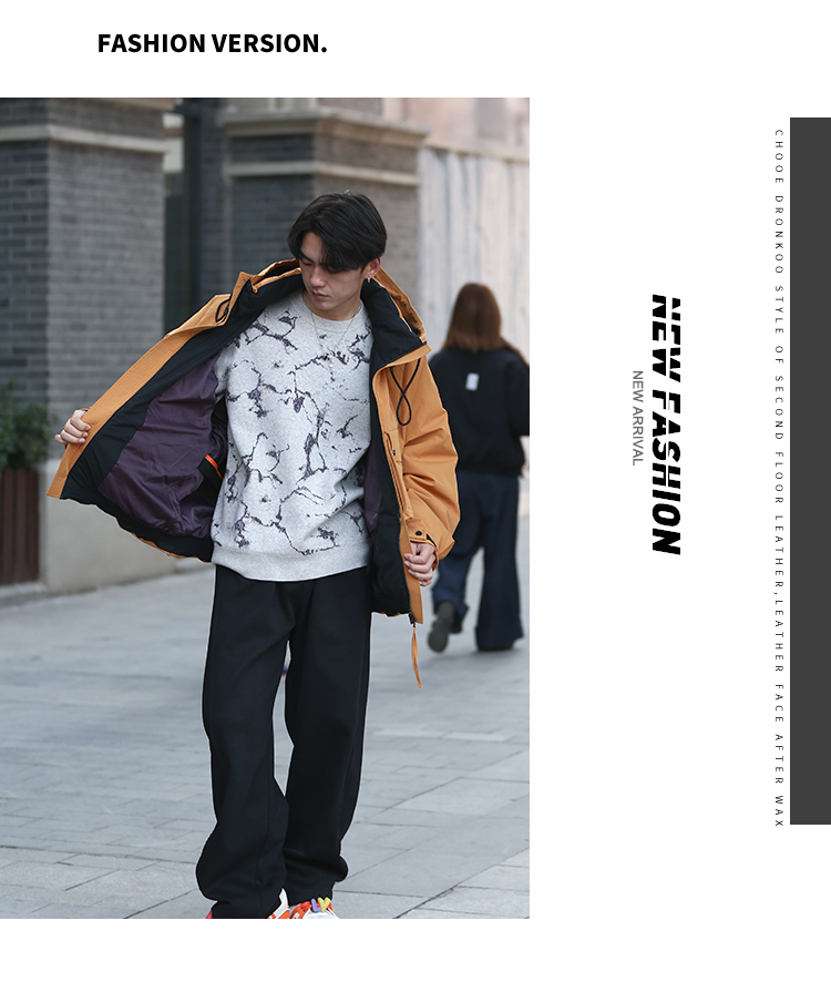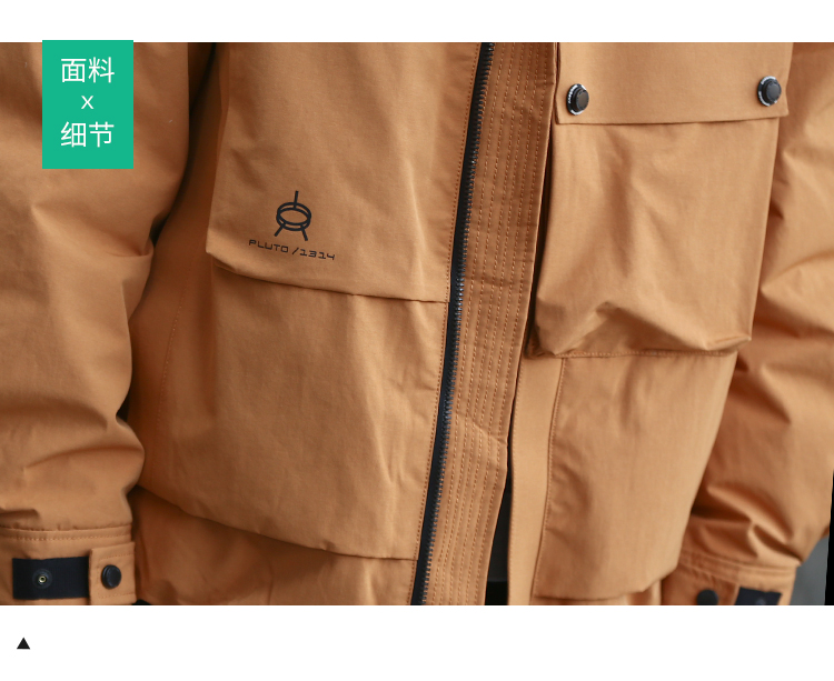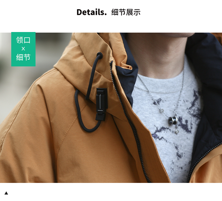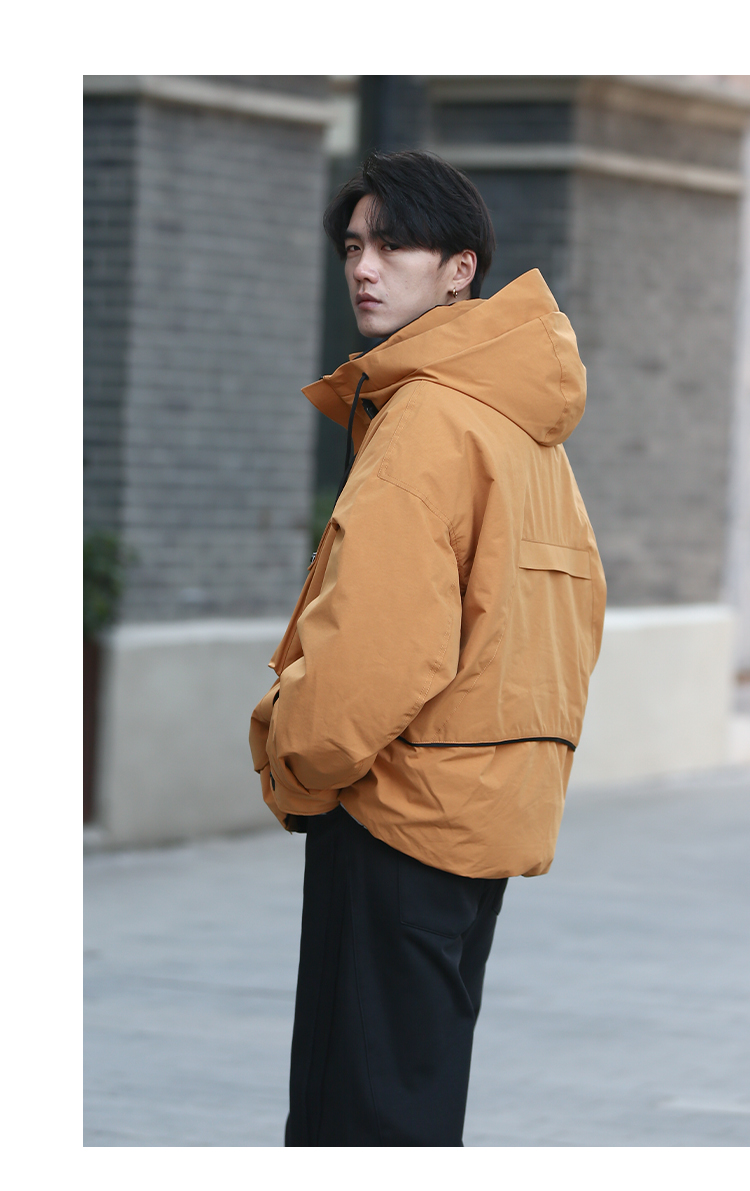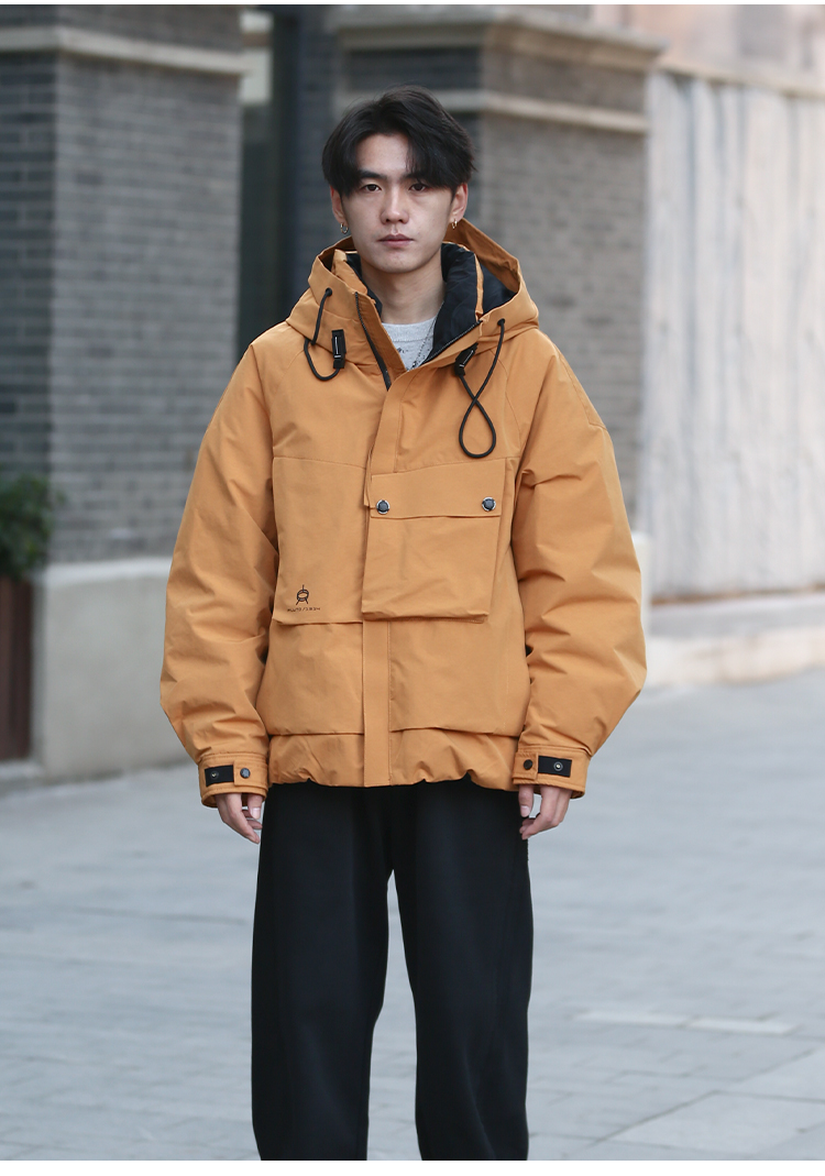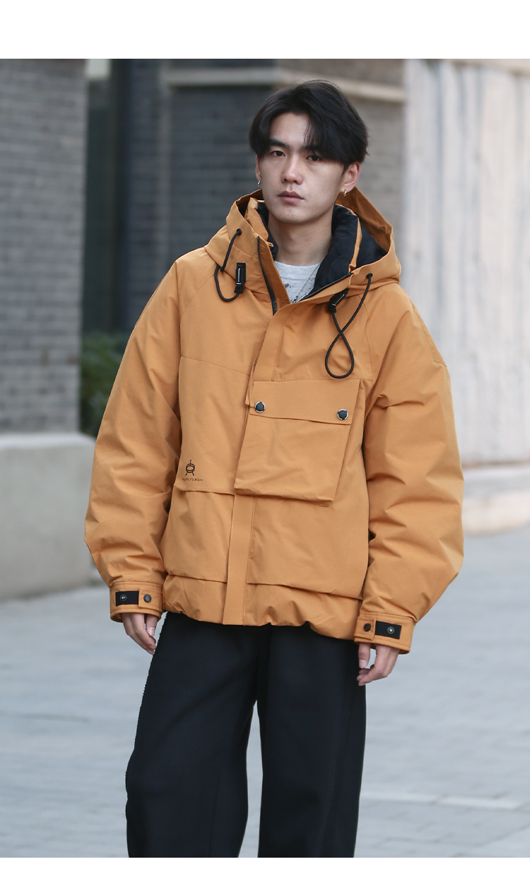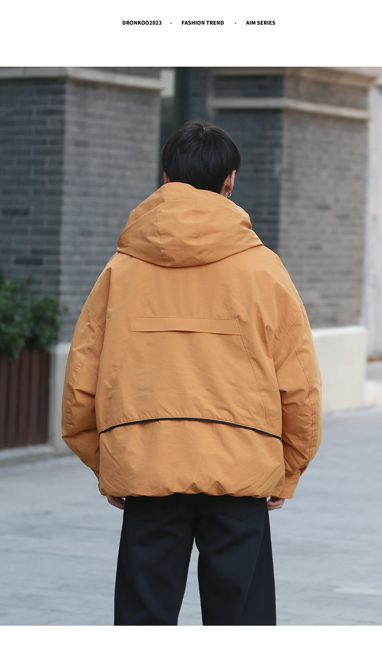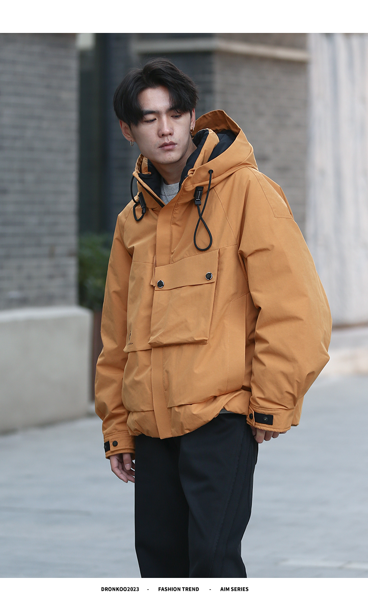 DRONKOO 2025 连帽前左立体袋盖后活页织带户外风短款厚羽绒服