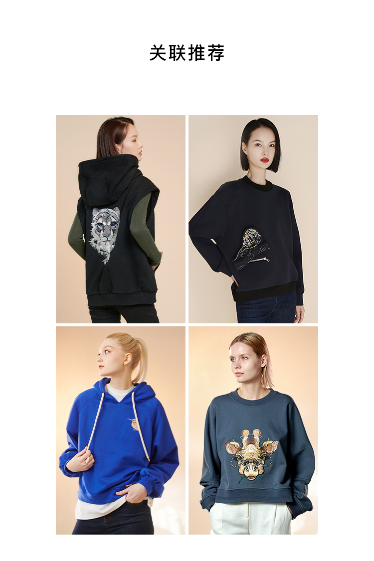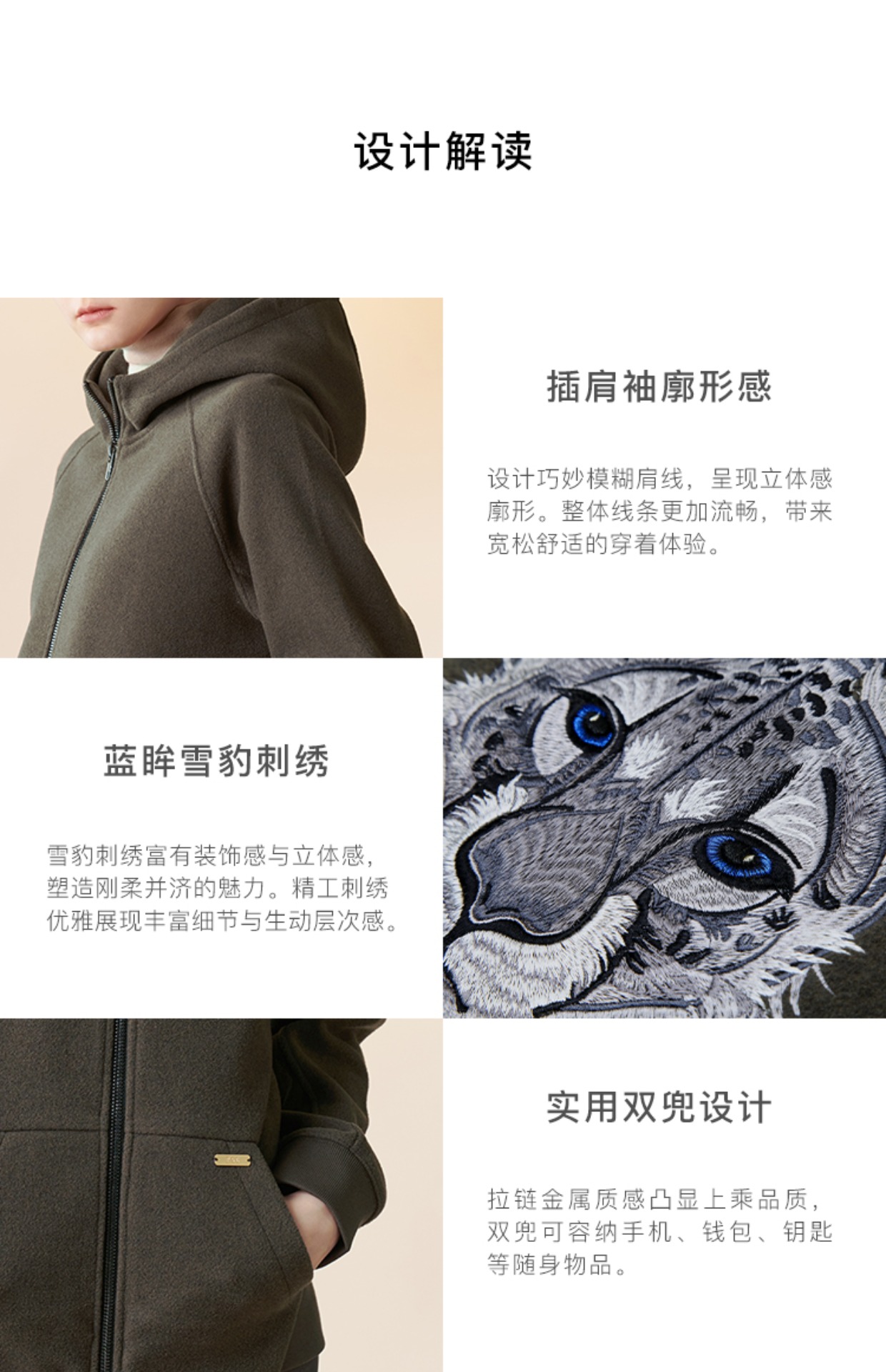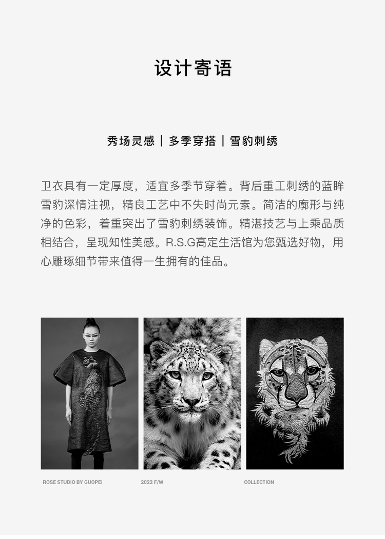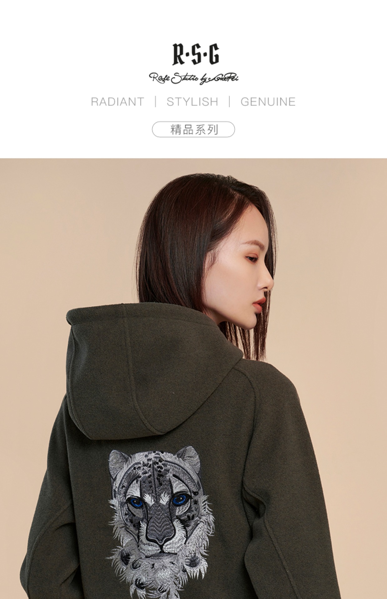 RSG郭培成衣品牌雪豹刺绣简约休闲上衣连帽开衫卫衣国风女装