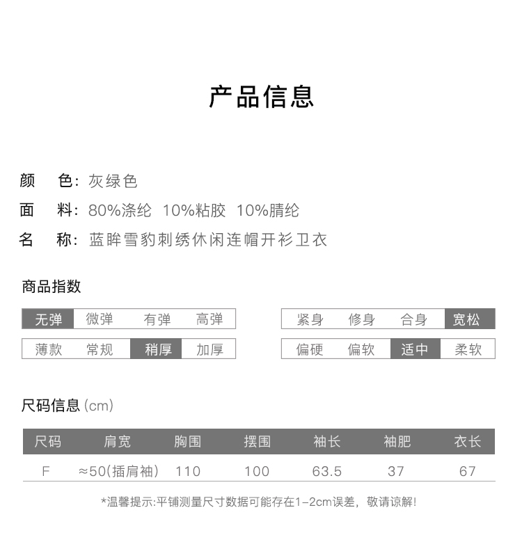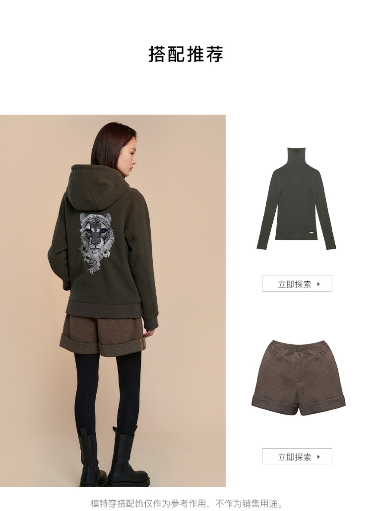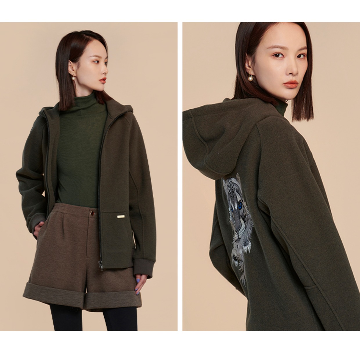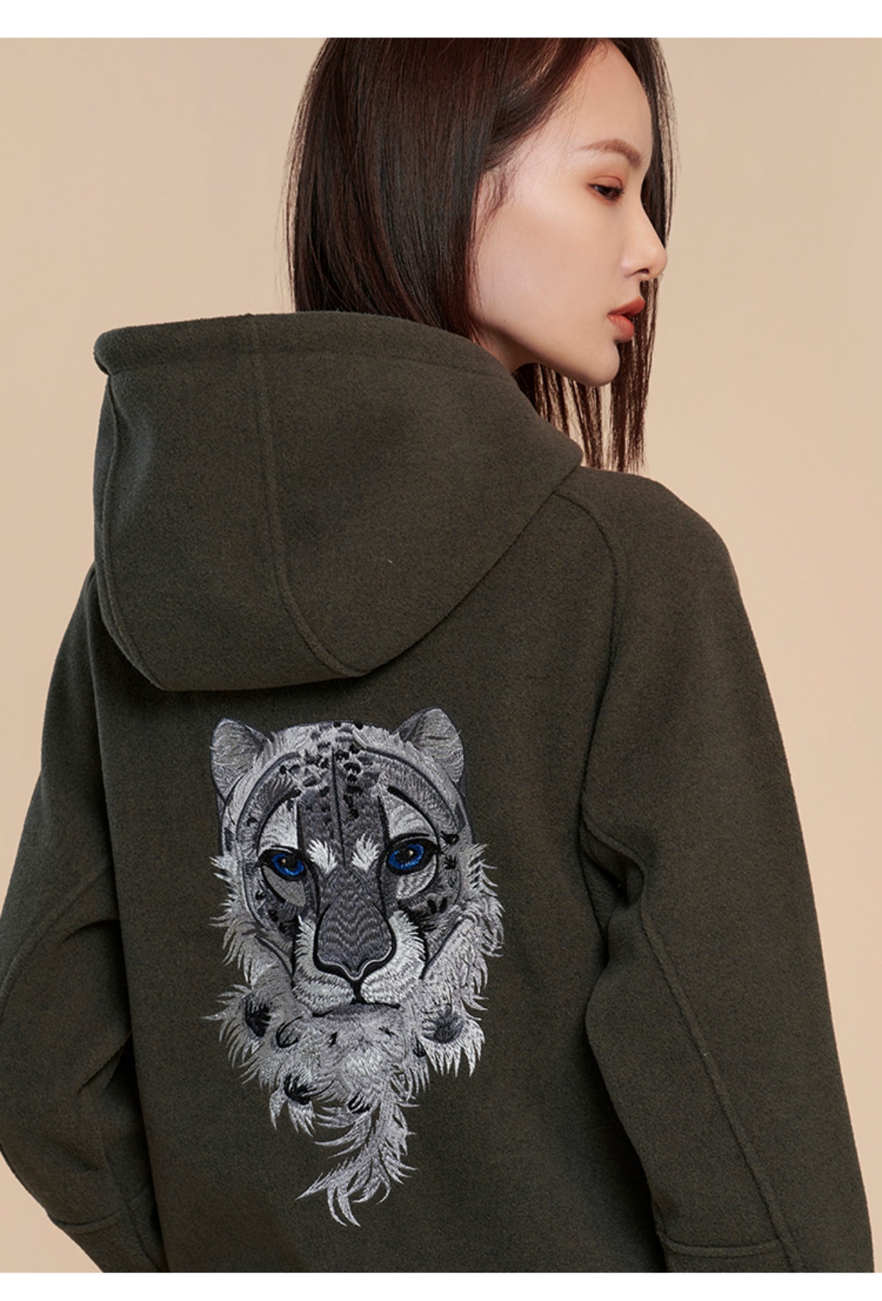 RSG郭培成衣品牌雪豹刺绣简约休闲上衣连帽开衫卫衣国风女装