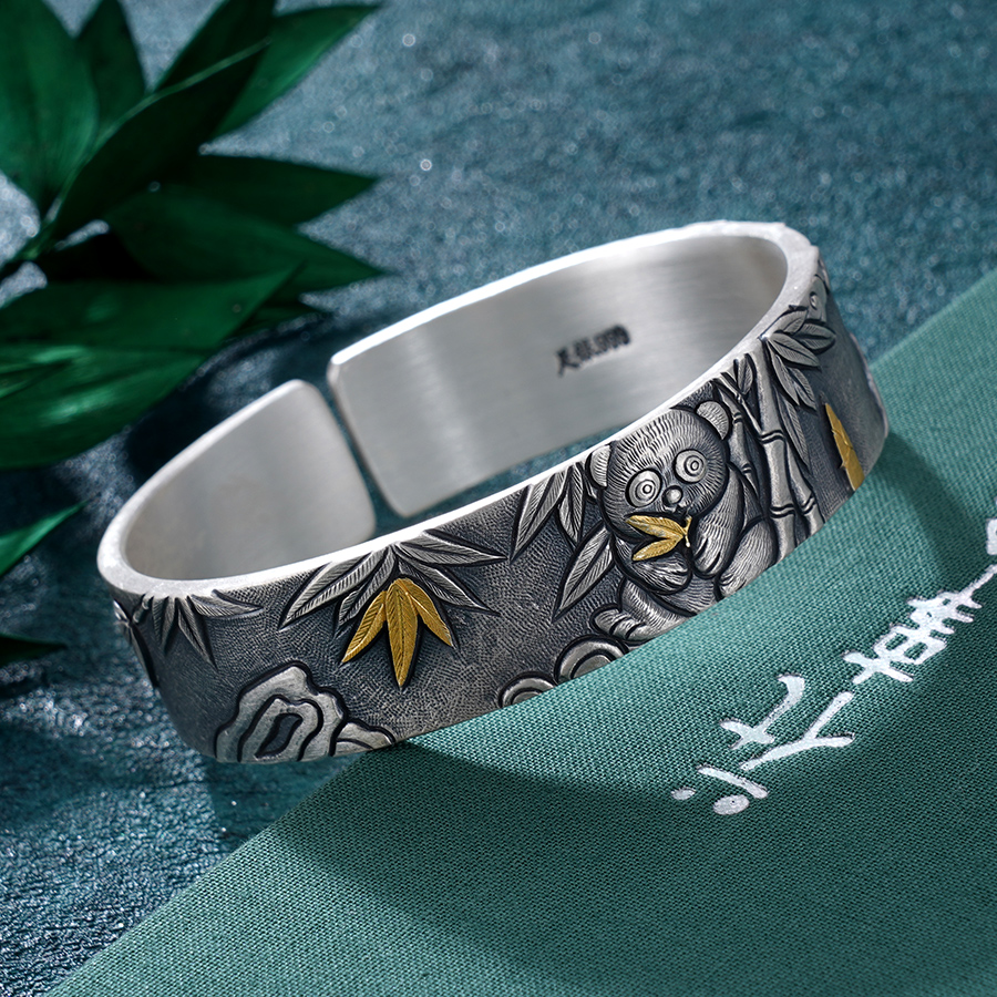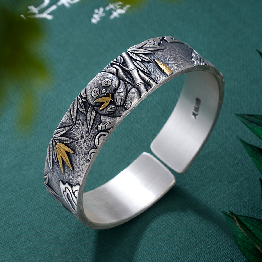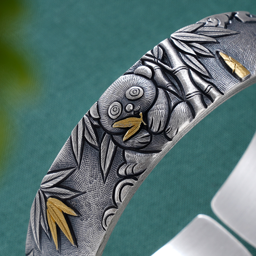 【寓意】:手镯设计灵感源自“国宝”熊猫,熊猫手捧竹叶,寓意节节高升。嵌金竹叶色彩绚丽,细腻质感,象征着向阳而生、充满希望。