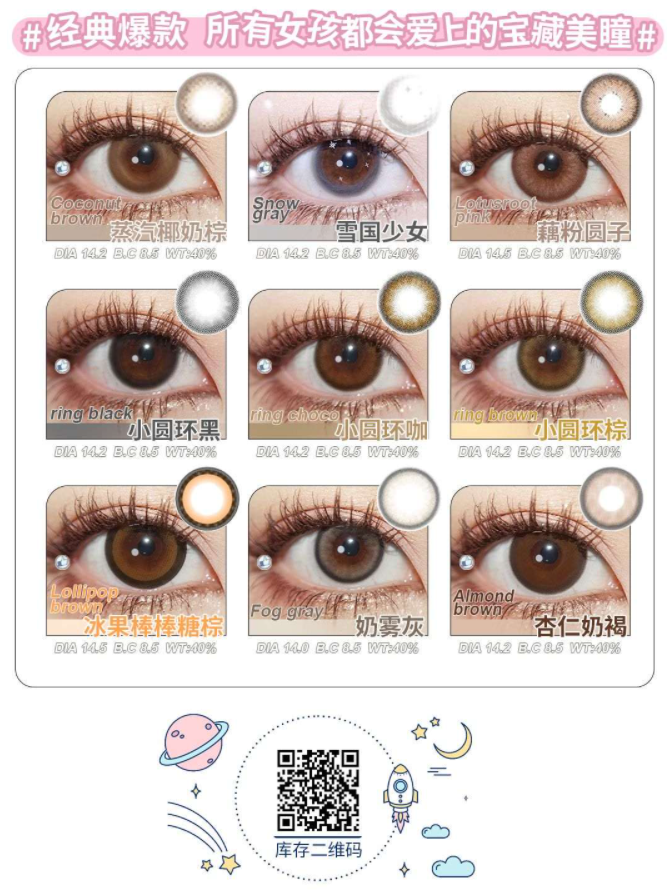E-lensstyle日抛 , 雪国少女 ,直径14.2着色13.5,79/一盒,138/两盒,258/四盒,366/六盒,送工具