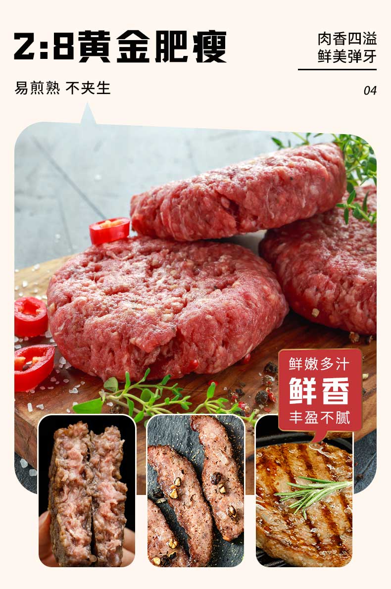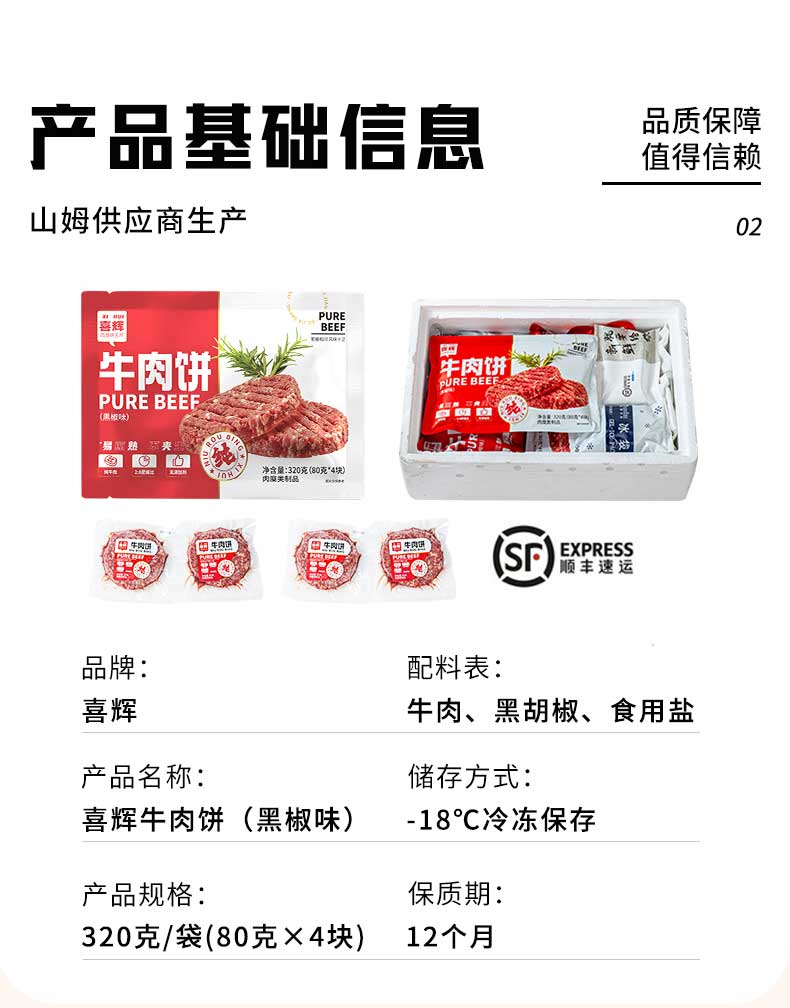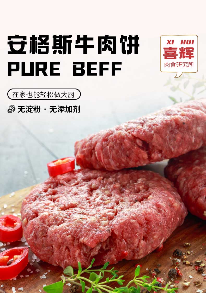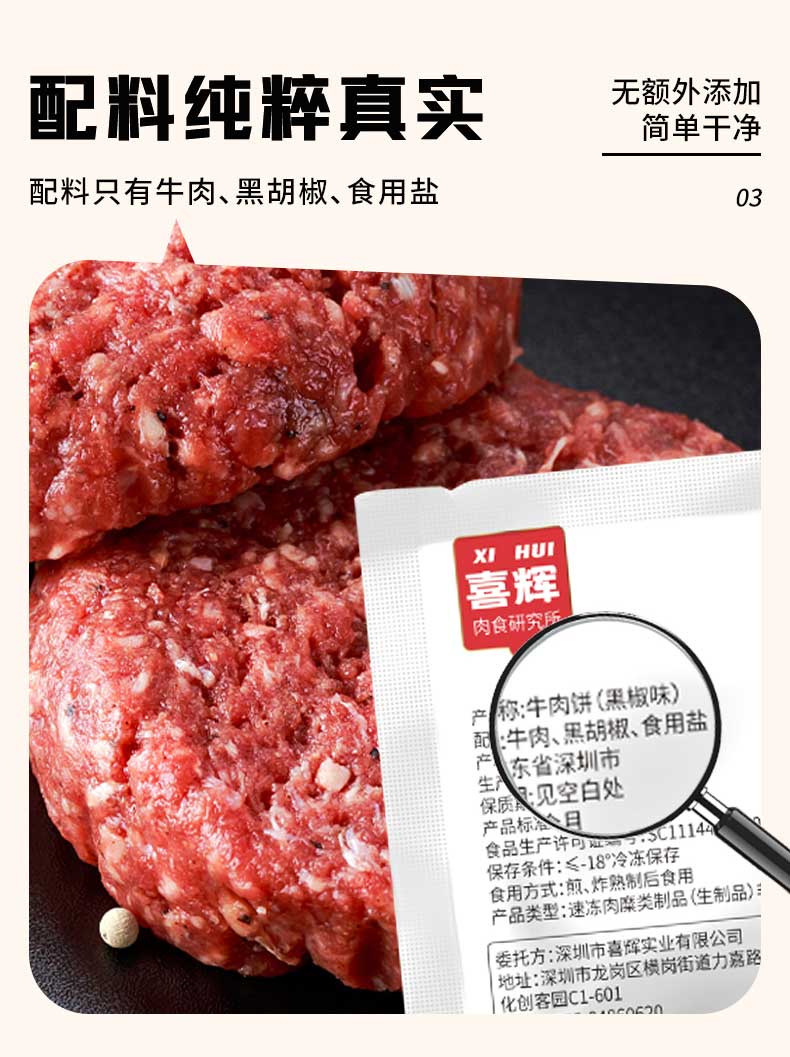 喜辉黑椒纯牛肉饼 无淀粉纯牛肉 在家也能轻松做大厨