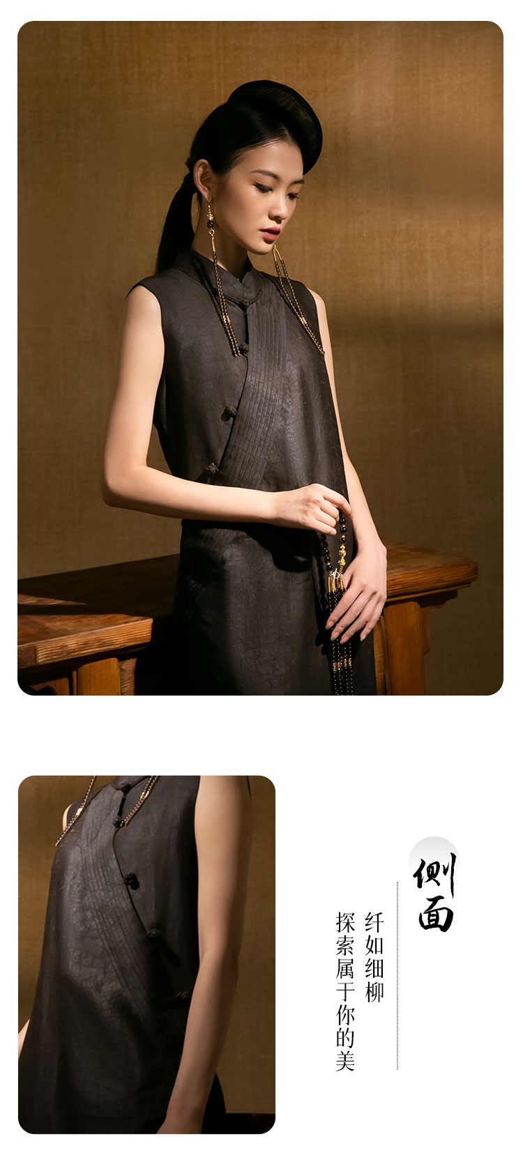 吉祥衣家国风新中式2025春夏款气质显瘦修身女装独上青舟马甲裙