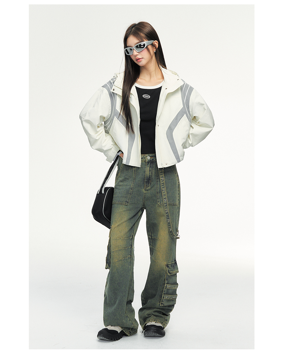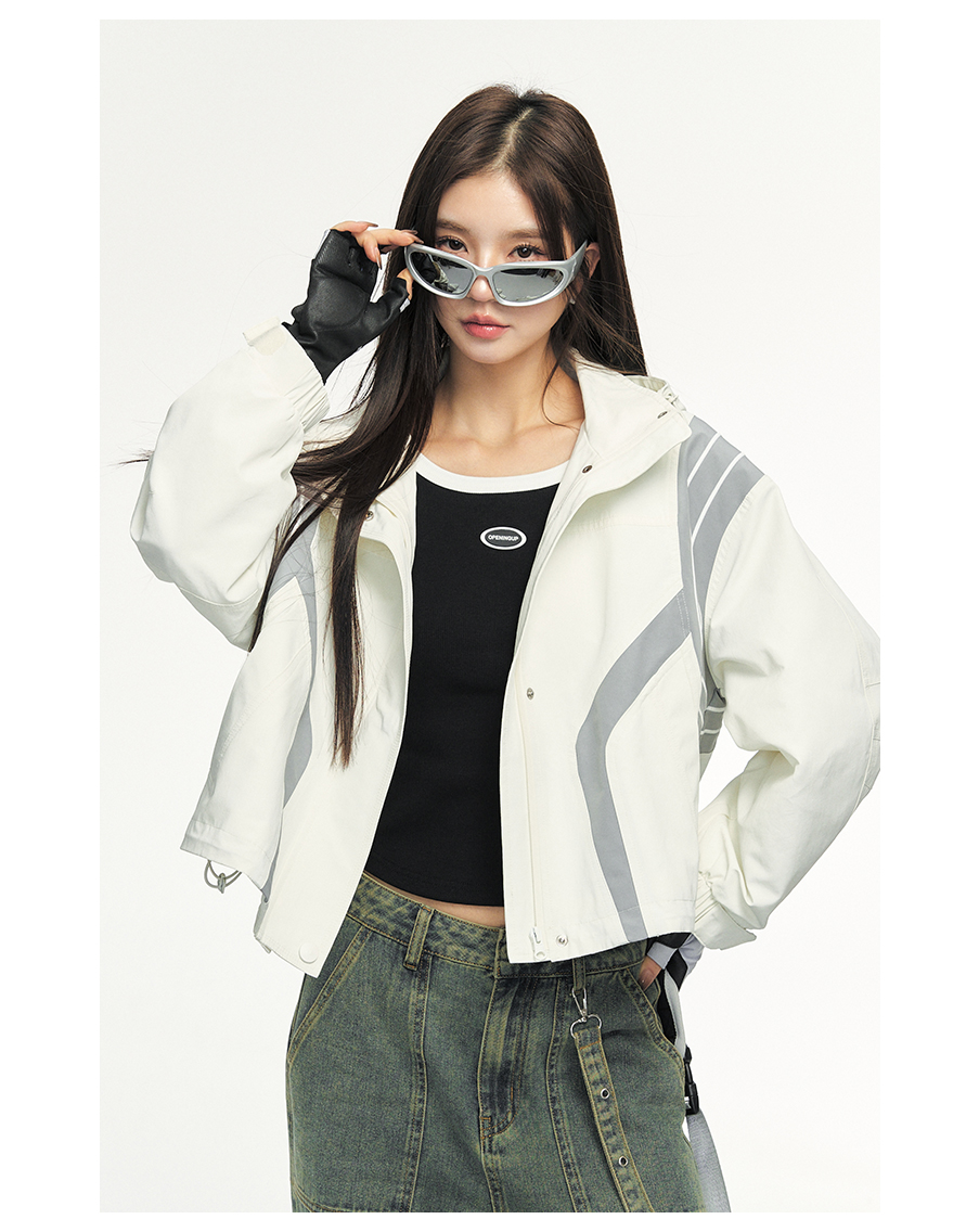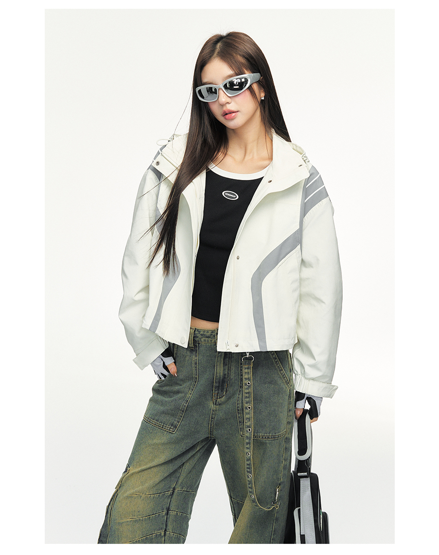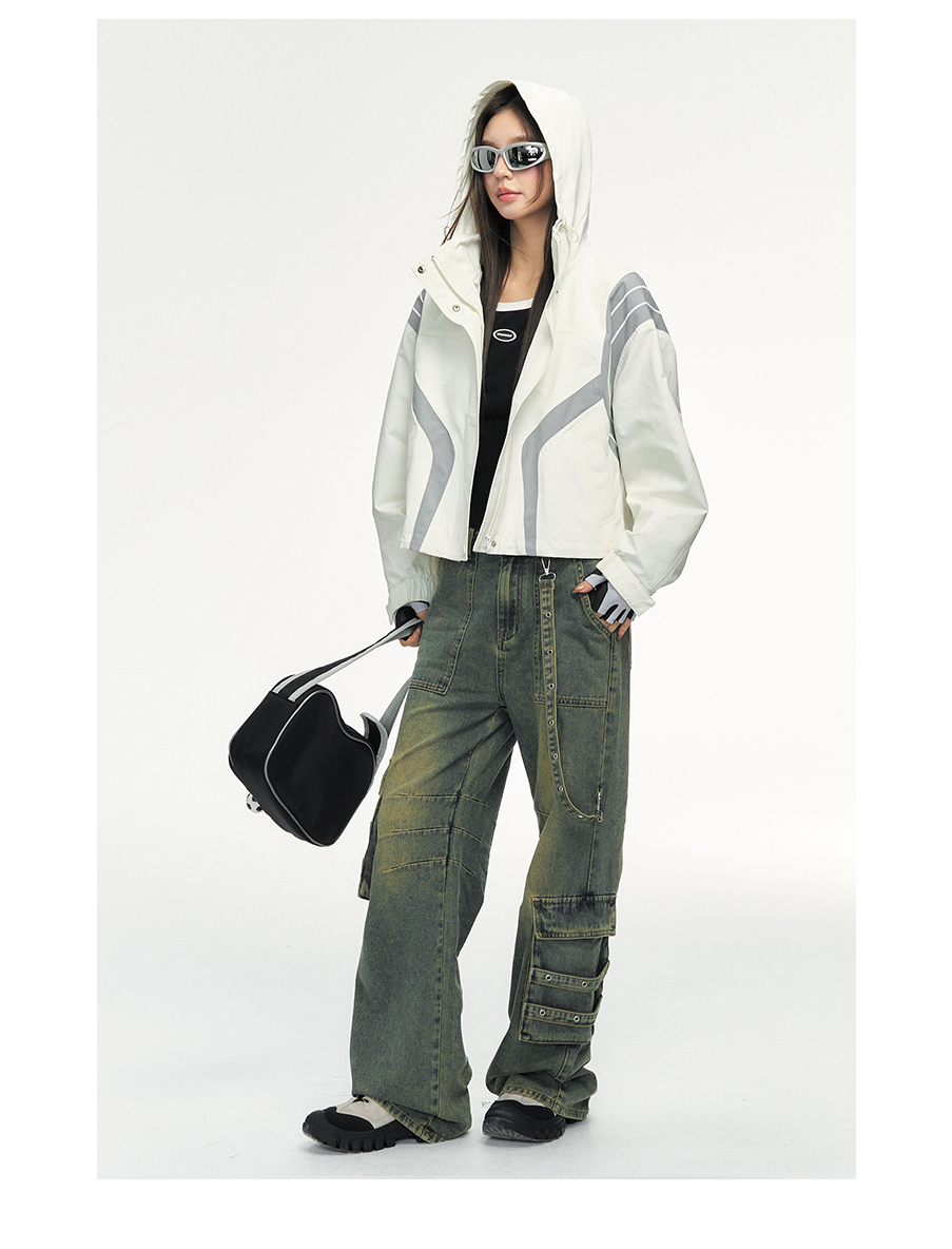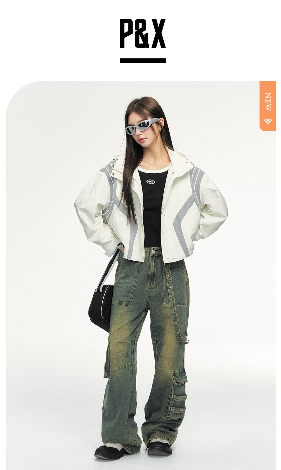 P&X设计师女装 休闲运动宽松连帽渐变色短款外套 824213378 绿色