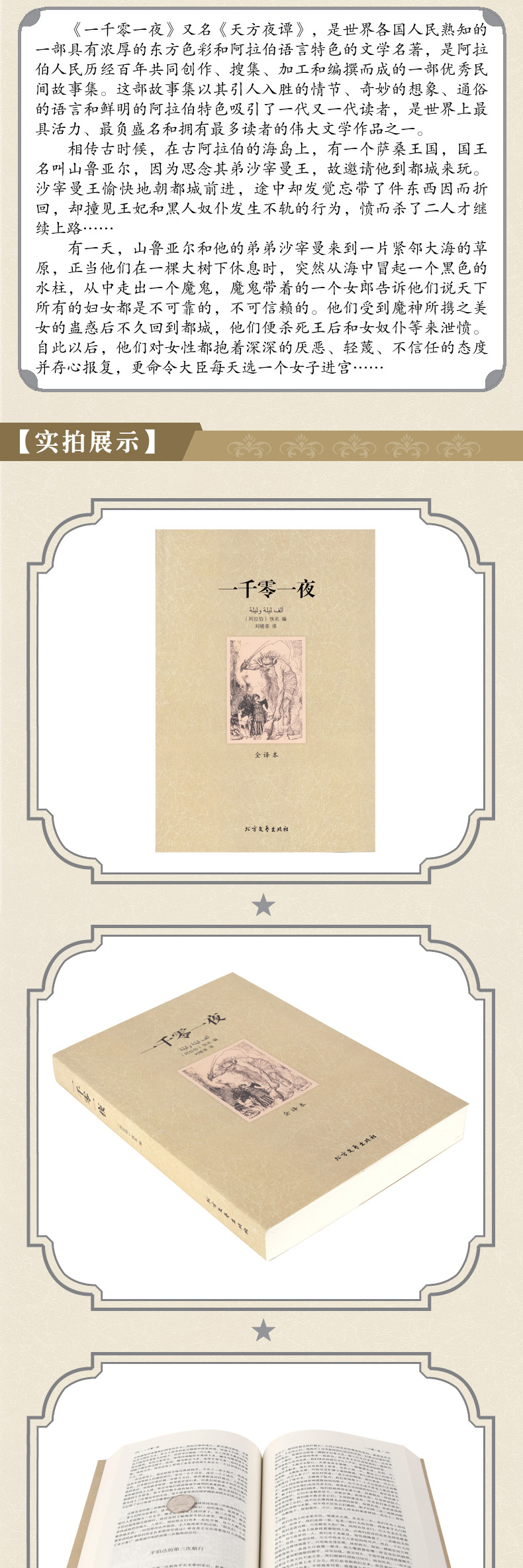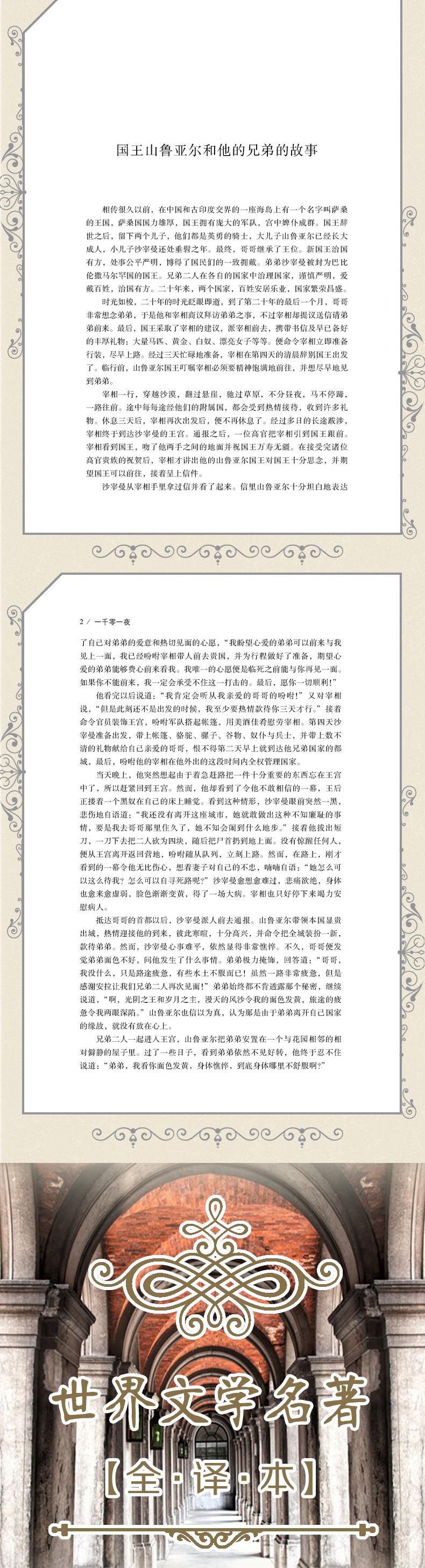 【正版】 世界文学名著—一千零一夜 全译本无删减原版原著全文翻译 儿童文学名著青少年中小学生课外阅读书籍