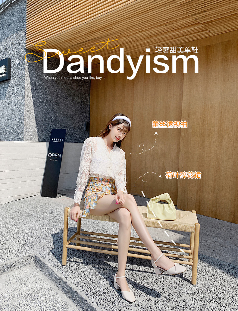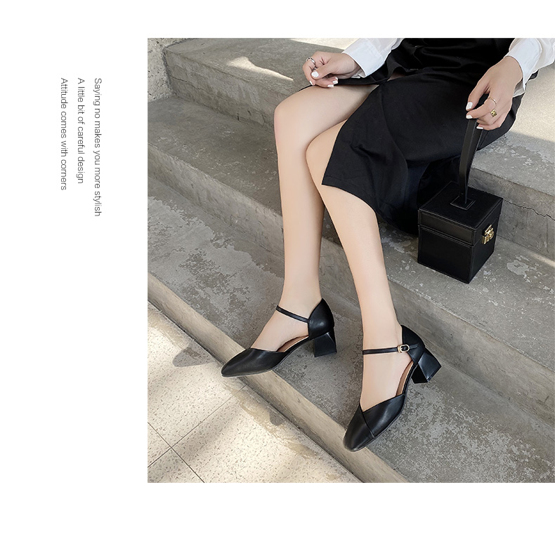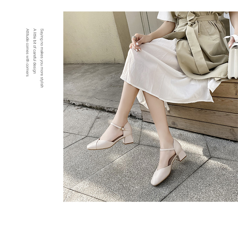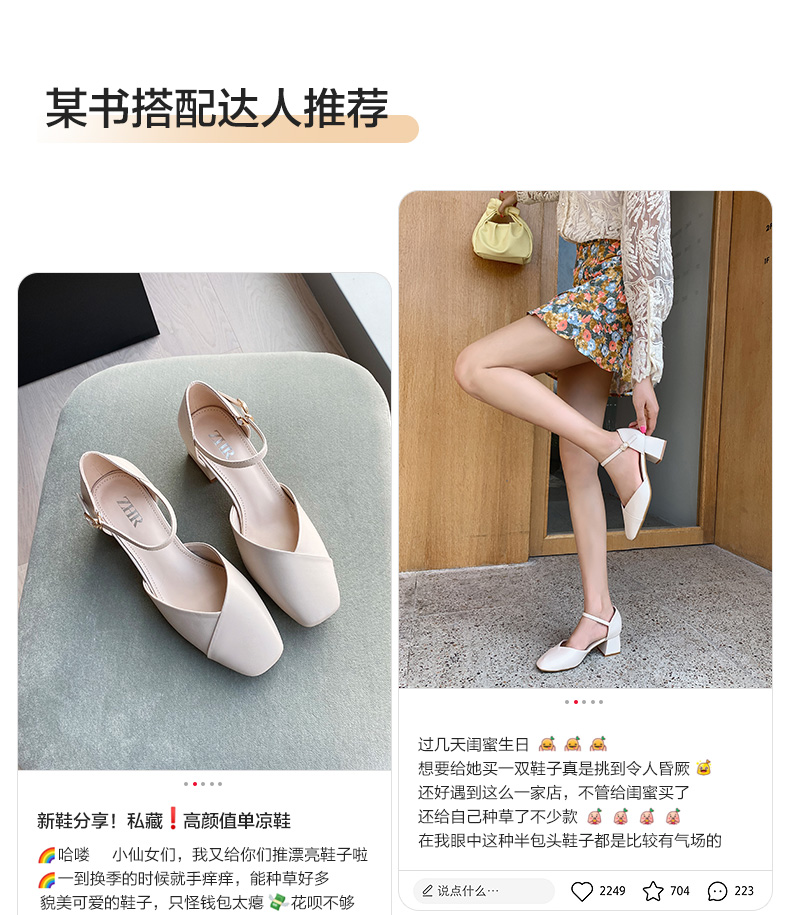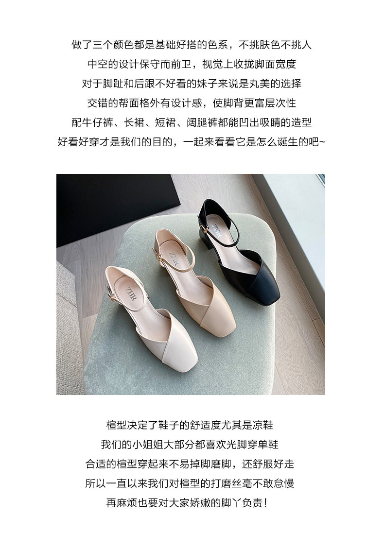 ZHR一字带包头凉鞋2023新款网红时尚女鞋夏高跟粗跟百搭仙女单鞋
