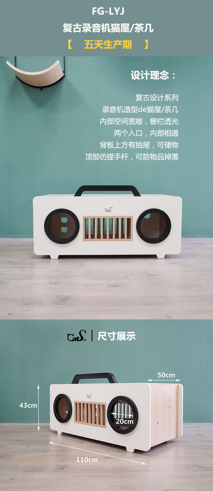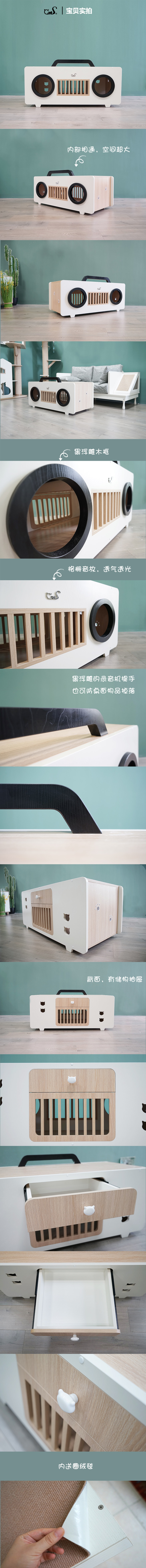 CatS猫家具 复古录音机拼色茶几/木制猫屋猫窝 猫咪玩具 包邮