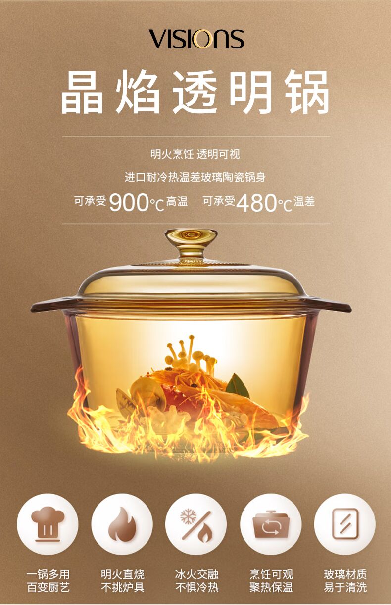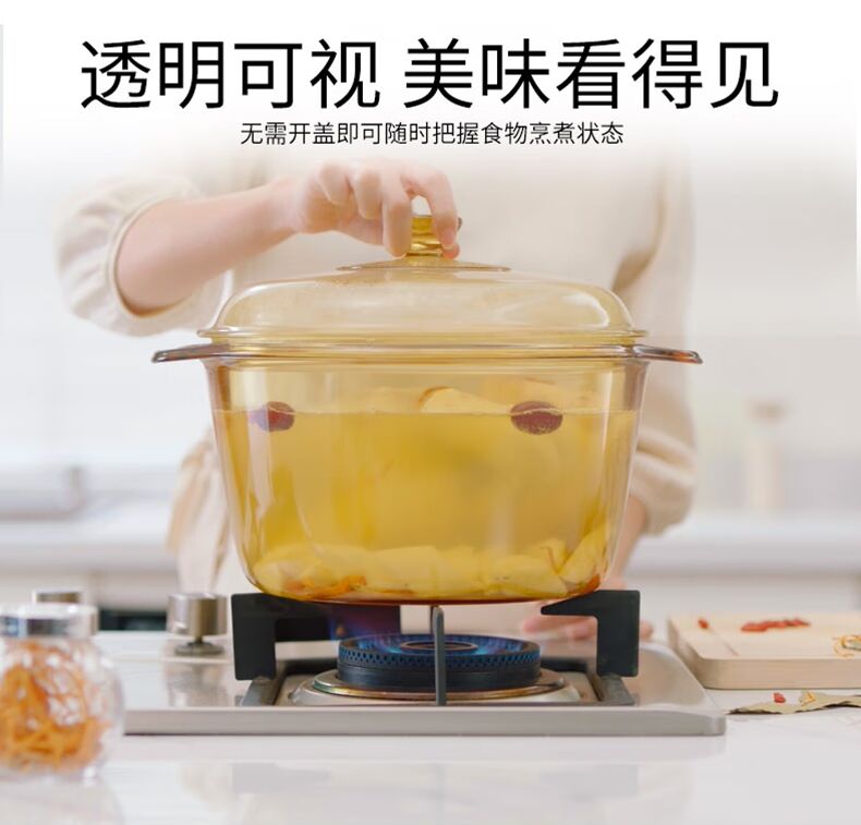康宁晶焰系列透明锅耐热玻璃汤锅琥珀色可视化煮锅炖锅 晶焰系列1.5L单柄透明锅 16cm