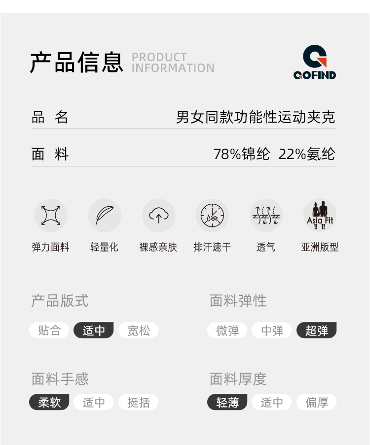 果凡男女同款功能性运动夹克GJA13151