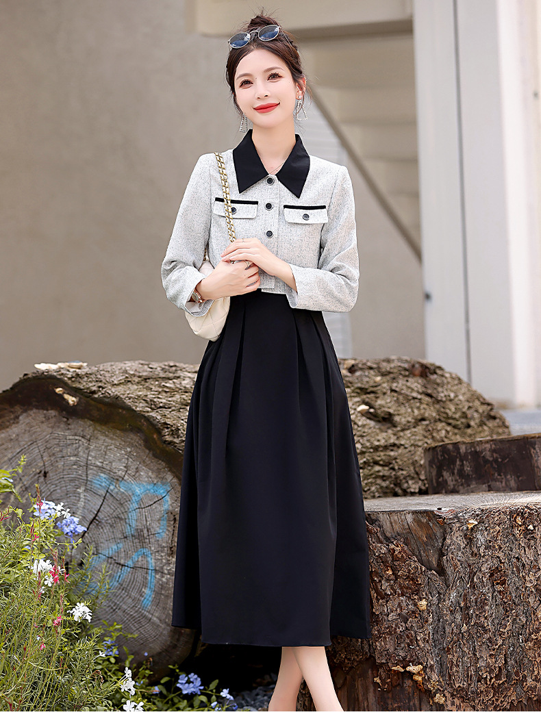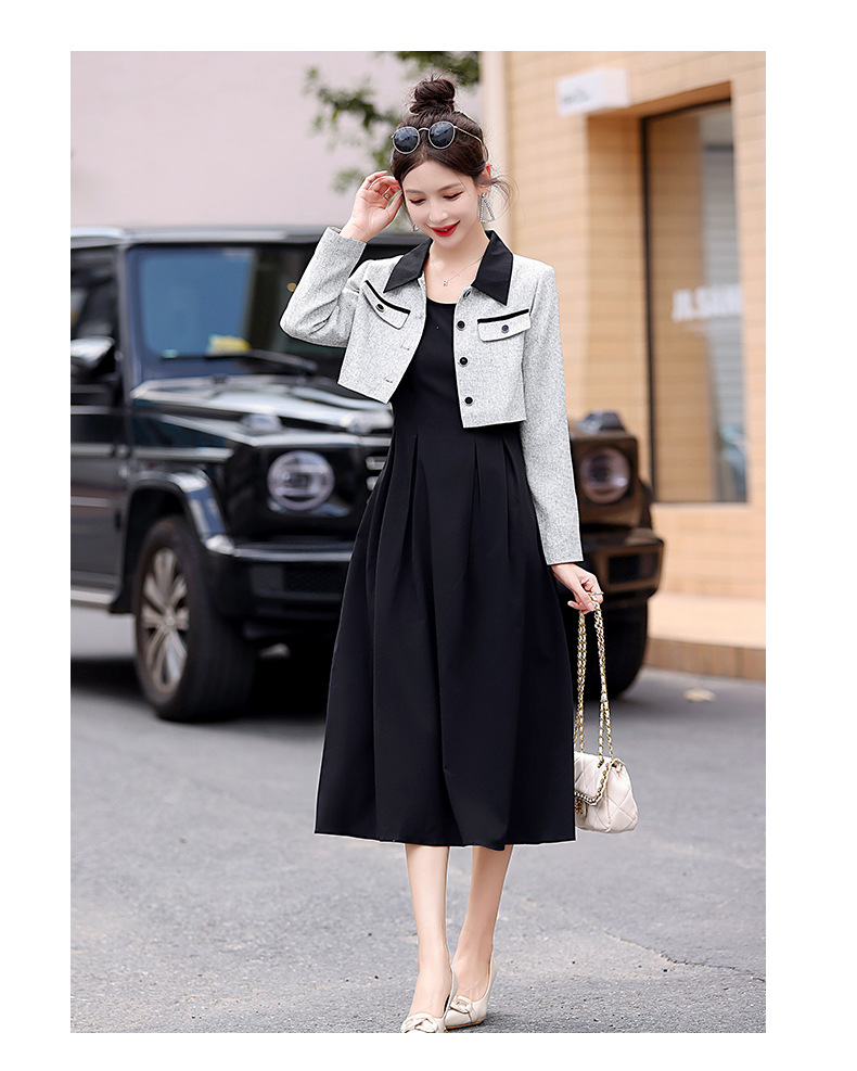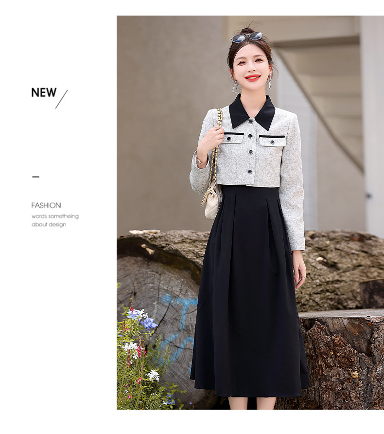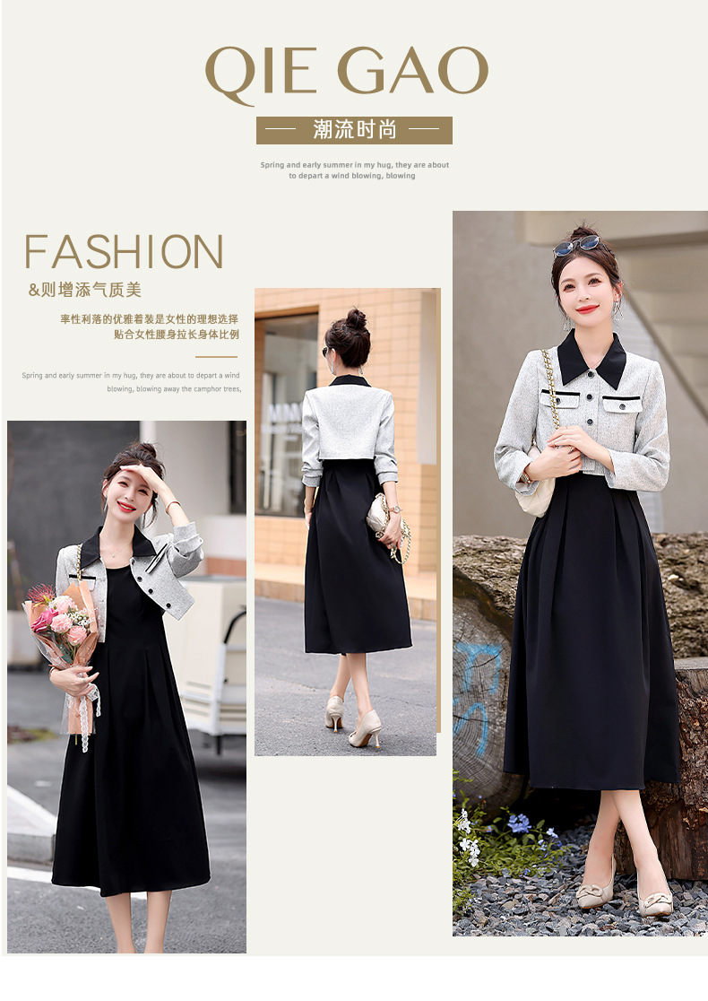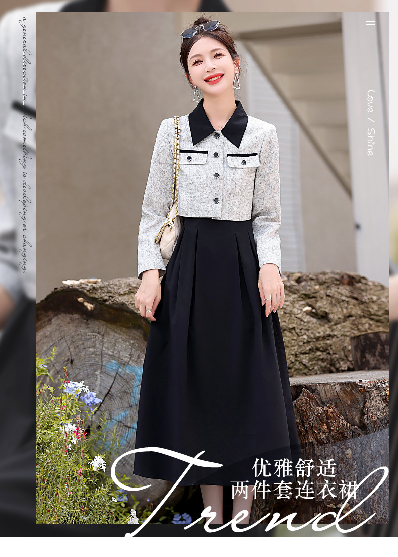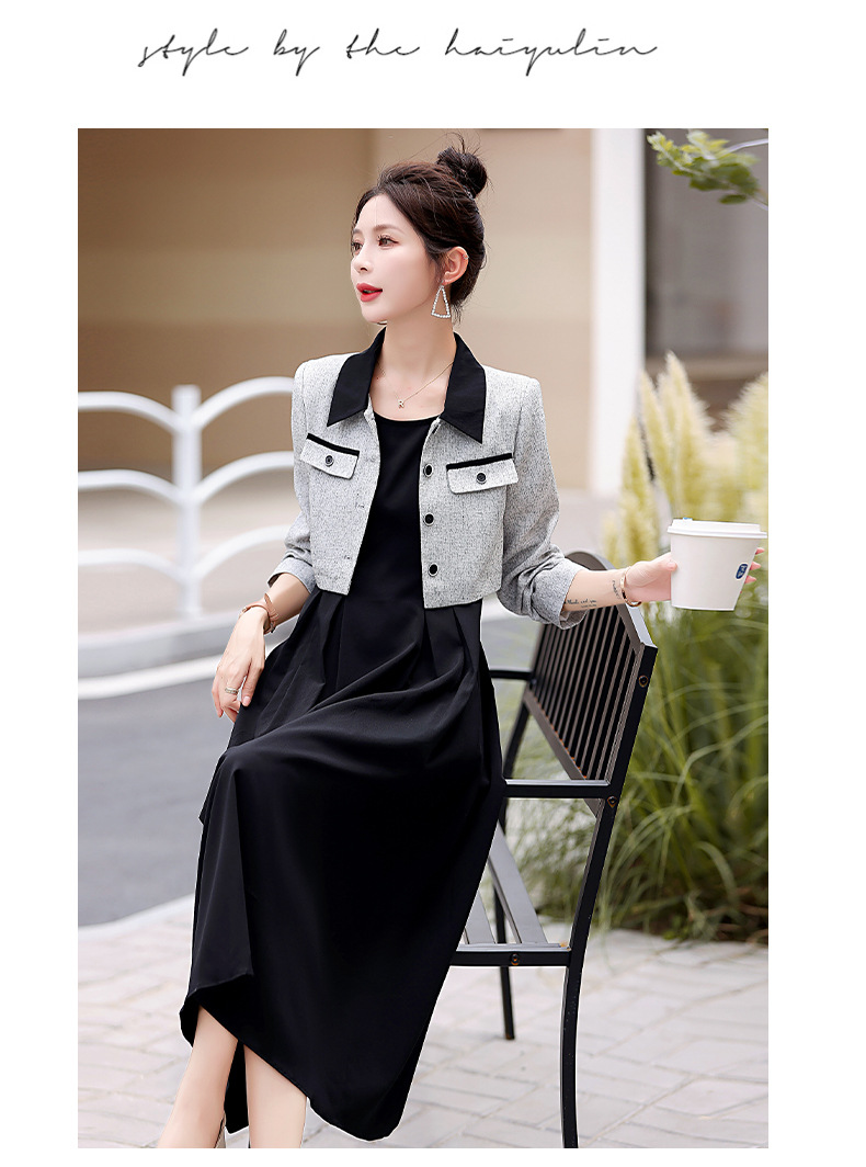 2024春季新款高级感气质轻熟风小香风外套配连衣裙两件套HR-LMJY6660