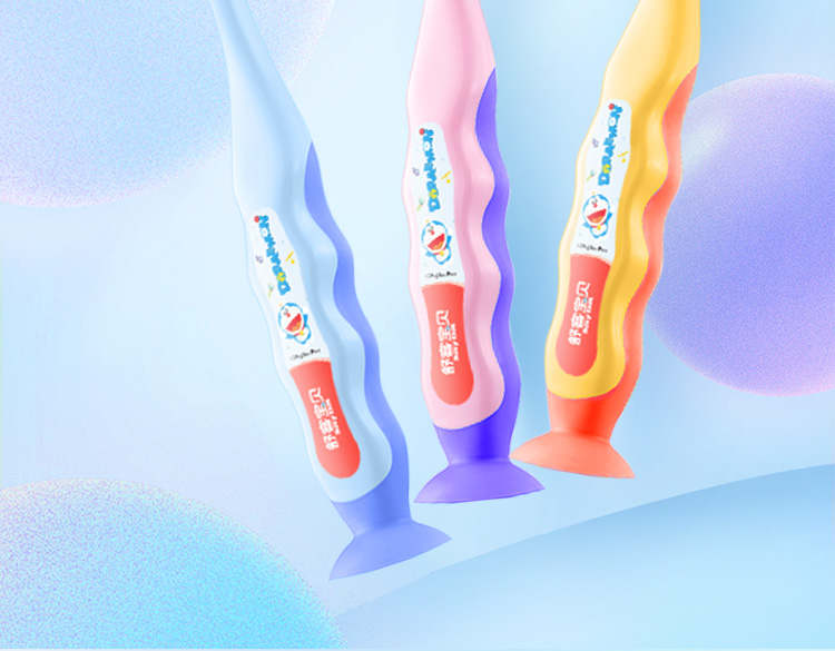 【会员专享价】 舒客宝贝儿童成长牙刷 2-12岁可用 细软毛小刷头 趣味吸盘 防滑刷柄(哆啦A梦款包装随机发)