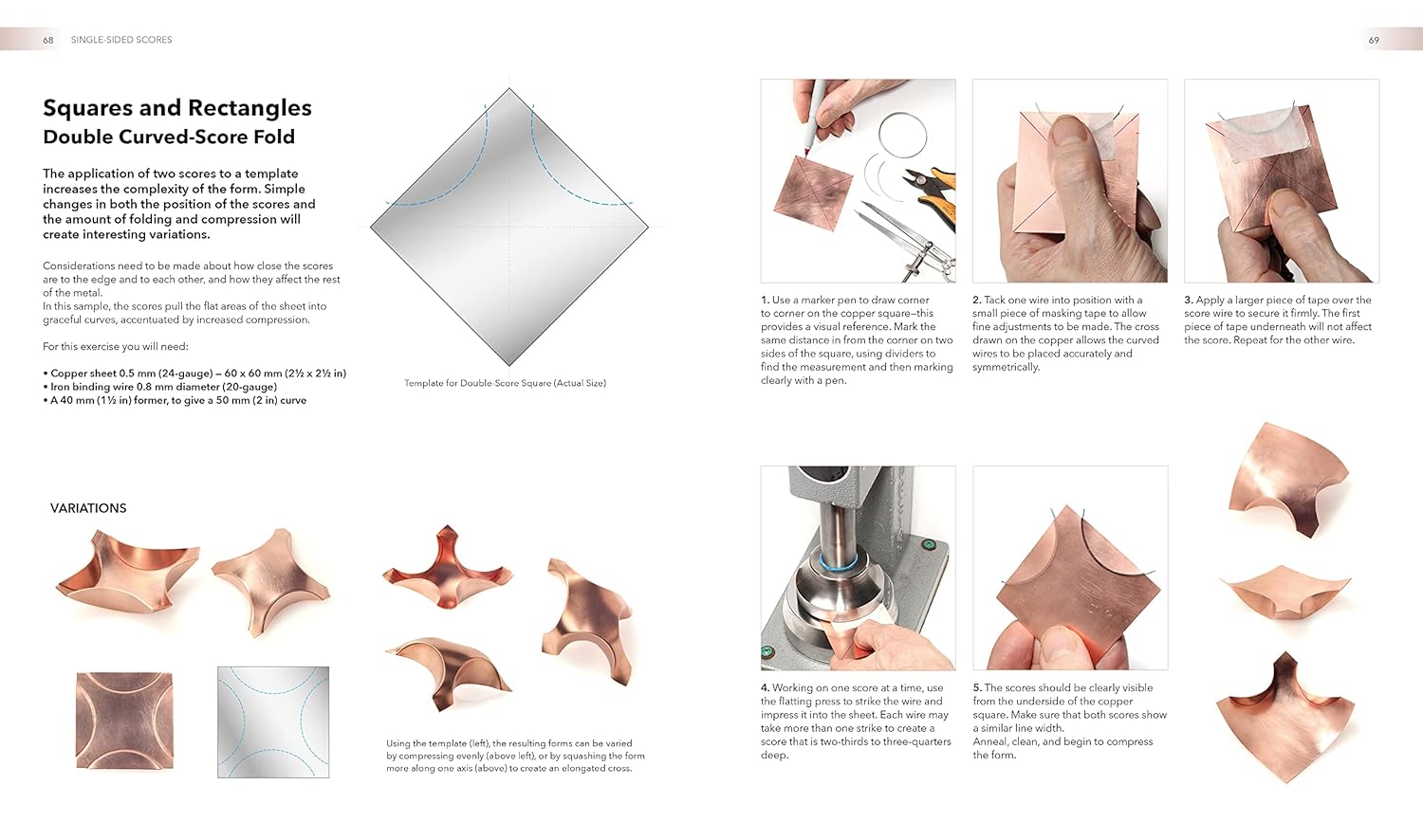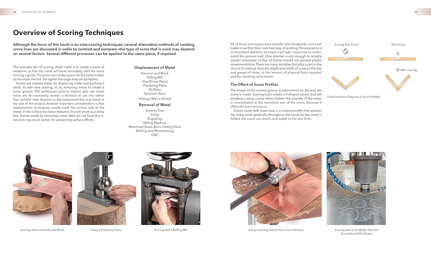 A detailed and abundantly-illustrated reference that focuses on the innovative curved score folding for sheet metal techniques to create beautiful, dynamic three-dimensional forms, much like metal origami, in jewellery and metalsmithing. Anastasia Young and Paul Wells, both renowned London-based jewellers, authors and lecturers, have created a practical visual handbook on curved scoring and folding techniques applied to jewellery and metalsmithing for small objects. The book's clear, hands-on approach, with explanatory photographs for each step, makes it an invaluable resource for established jewellers wishing to learn more about new techniques, jewellery students, home crafters and advanced amateurs. Readers will discover a variety of ways to score and fold metal and give it different finishes, shaping flat sheets into visually stunningly organic forms, including guides on the tools needed for each method. A final section contains useful resources, from a detailed analysis of score depth based on the gauge of the wire used (through diagrams to aid design and planning) to information about where to source materials and facts about metalworking and jewellery in general.