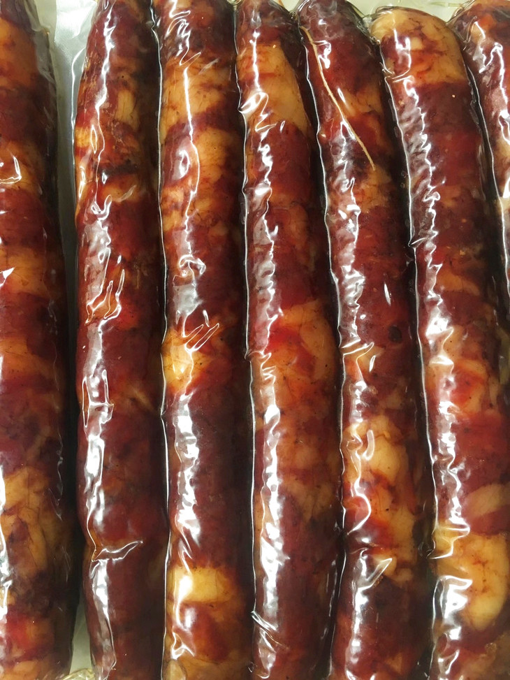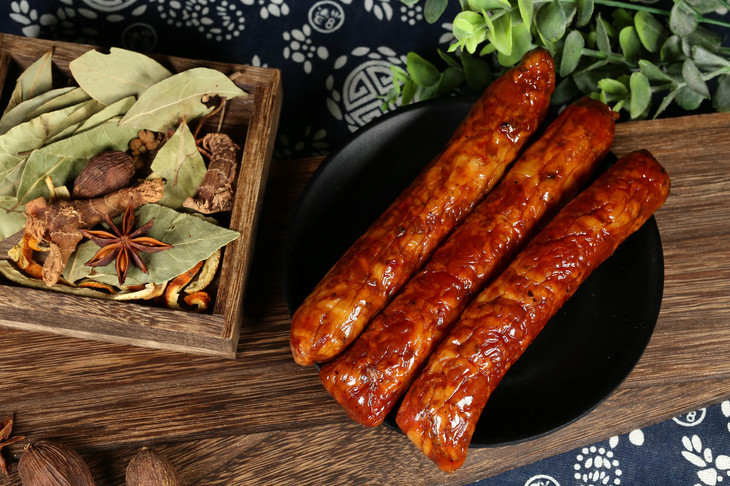 按照3:7的肥瘦比例,不加淀粉,人工灌制,口味分为五香和香辣两种,让大家可以选择自己喜欢的口味。