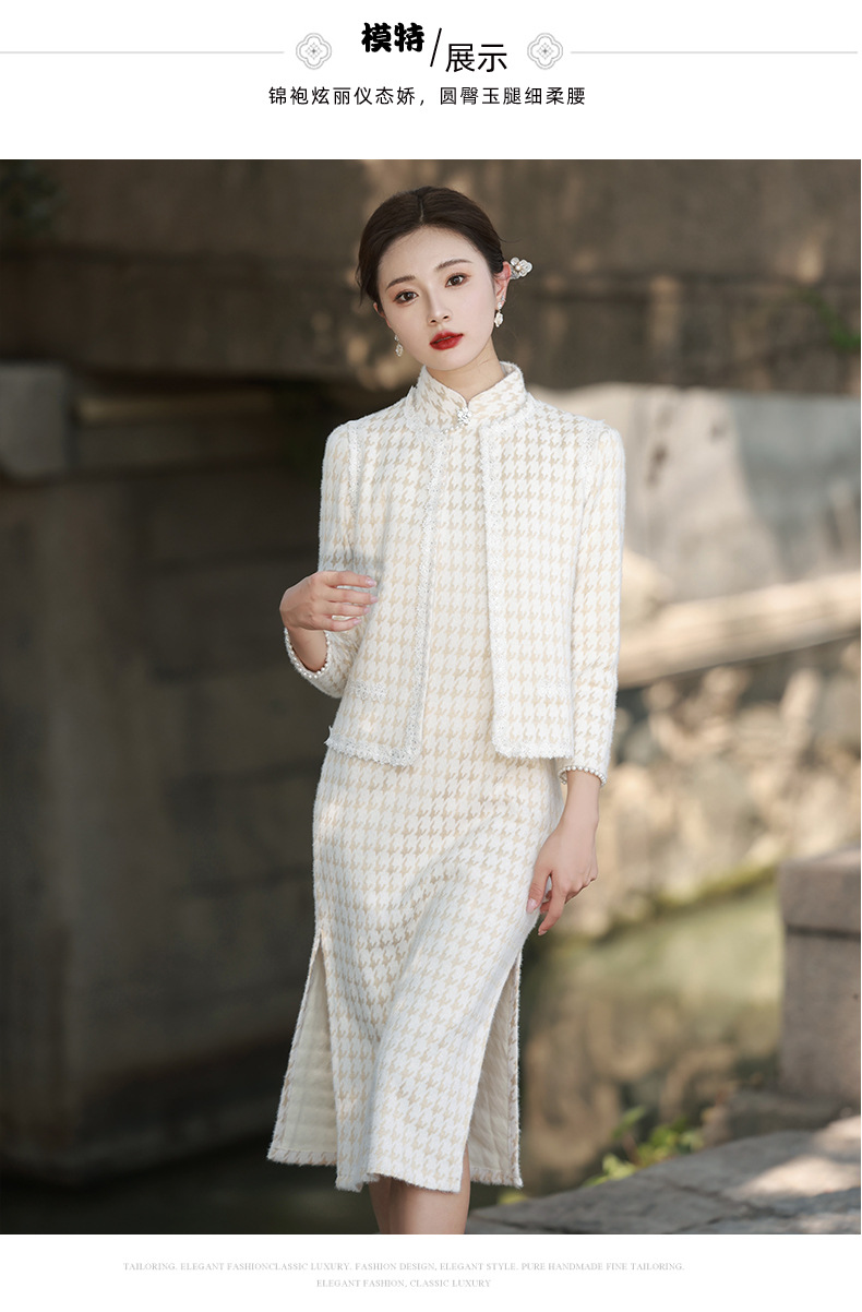 冬季新款,优雅民国风旗袍马甲改良复古气质貂绒旗袍套装BJS-8700