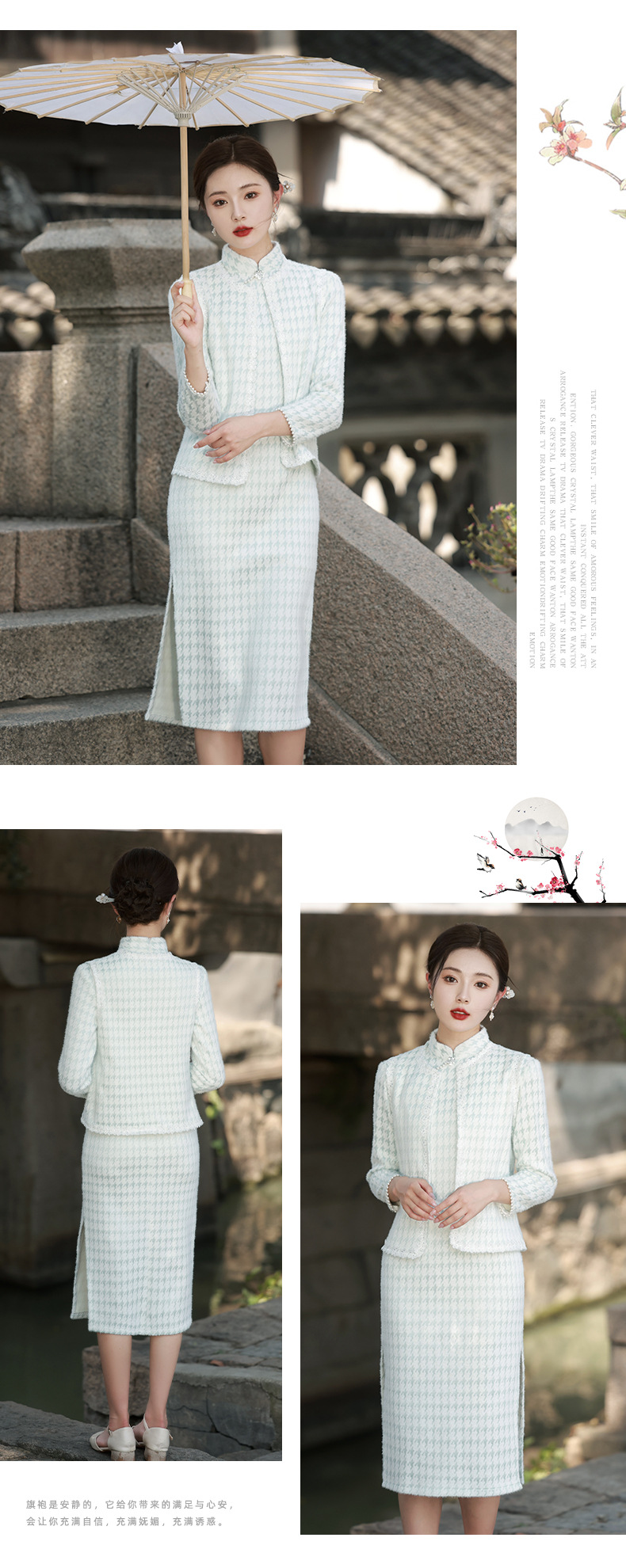 新款秋冬,女新中式国风两件套装年轻款少女改良旗袍马甲民国风GSJ-3522