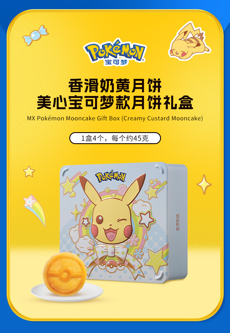 【乐享中秋】香港美心Pokemon香滑奶黄月饼4个装180g/070106 限定款奶香迸发甜蜜暴击