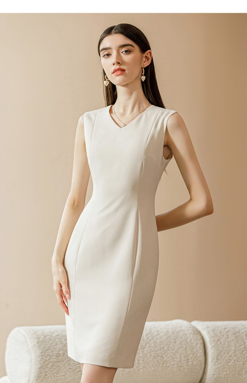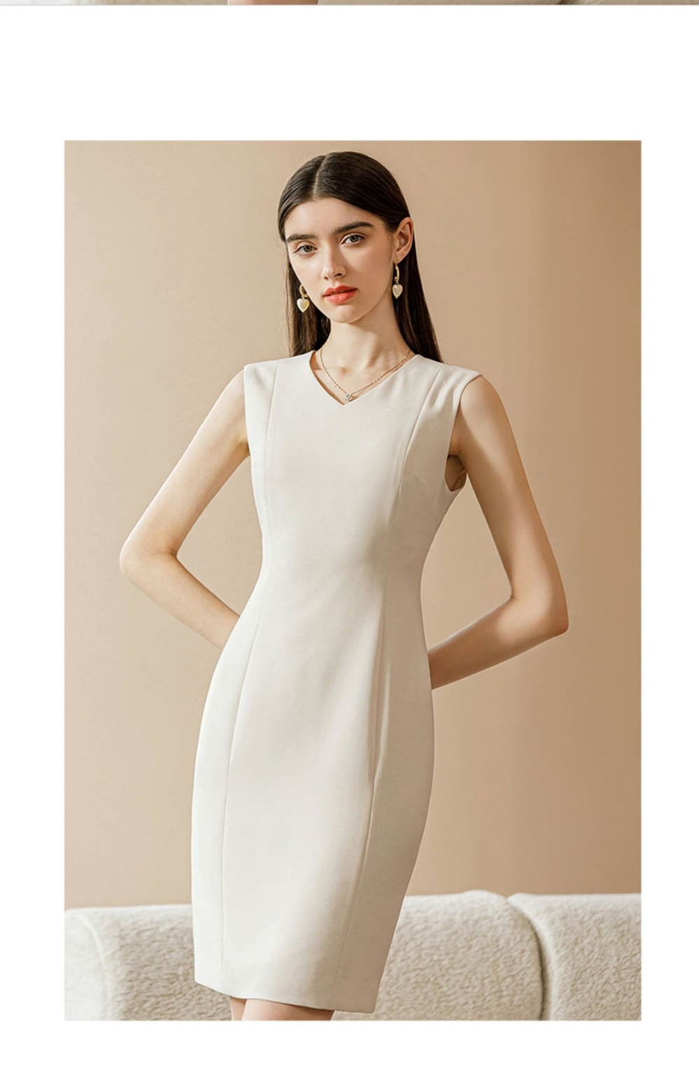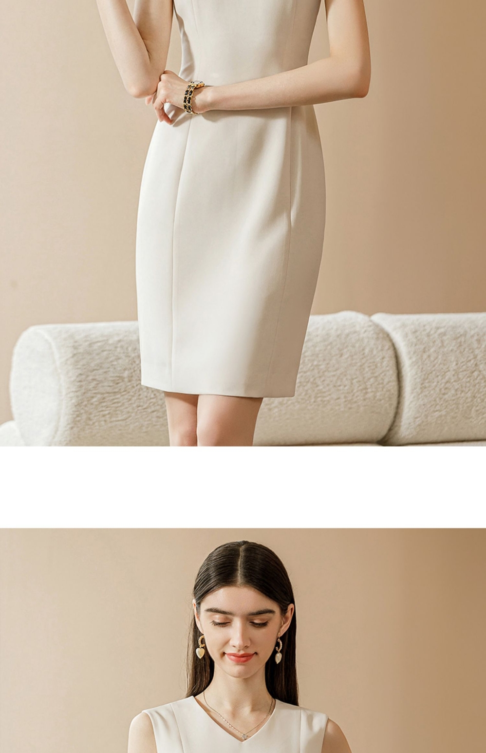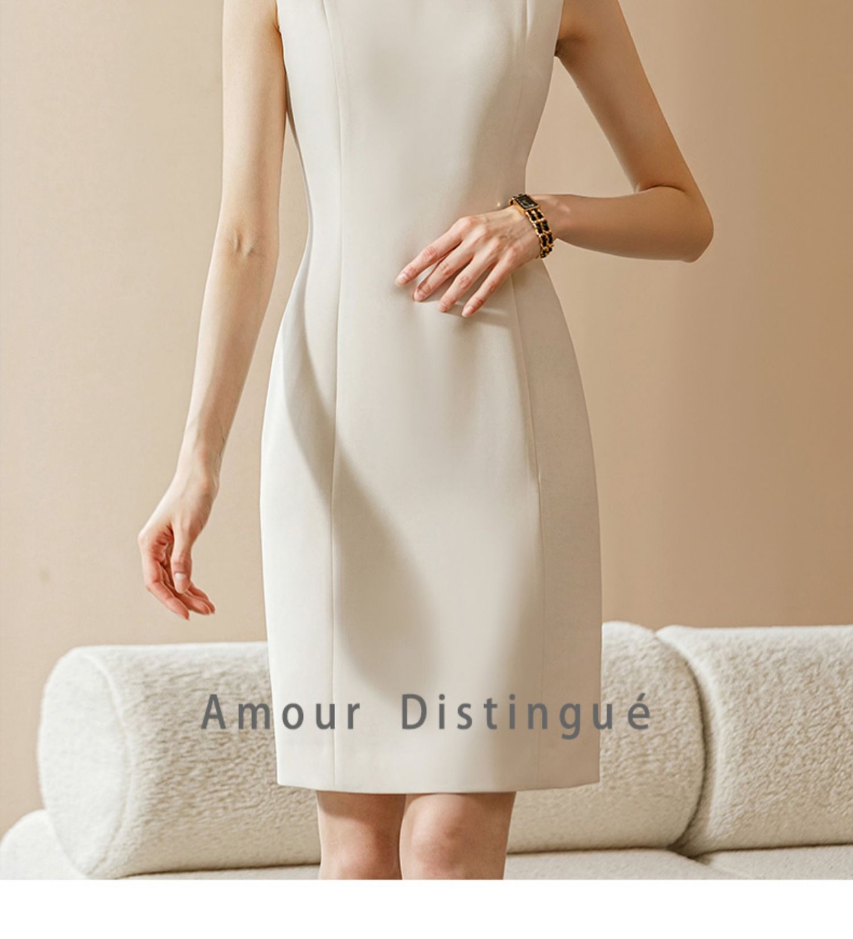 IWY/杏色夏季时尚职业装无袖背心西装连衣裙女OL气质收腰内搭裙子Q741