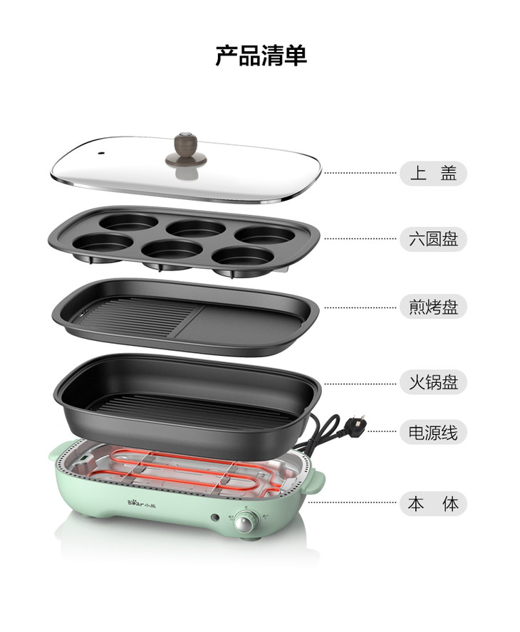 小熊电火锅烧烤一体锅火锅锅家用多功能料理锅网红烤锅小型电煮锅DHG-C40D5
