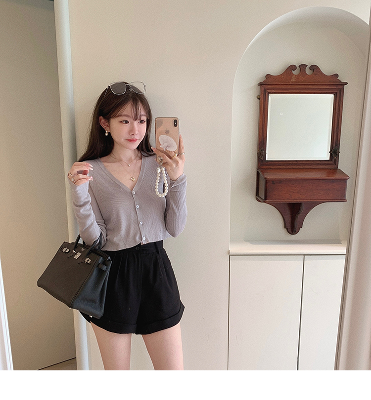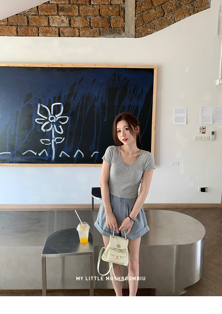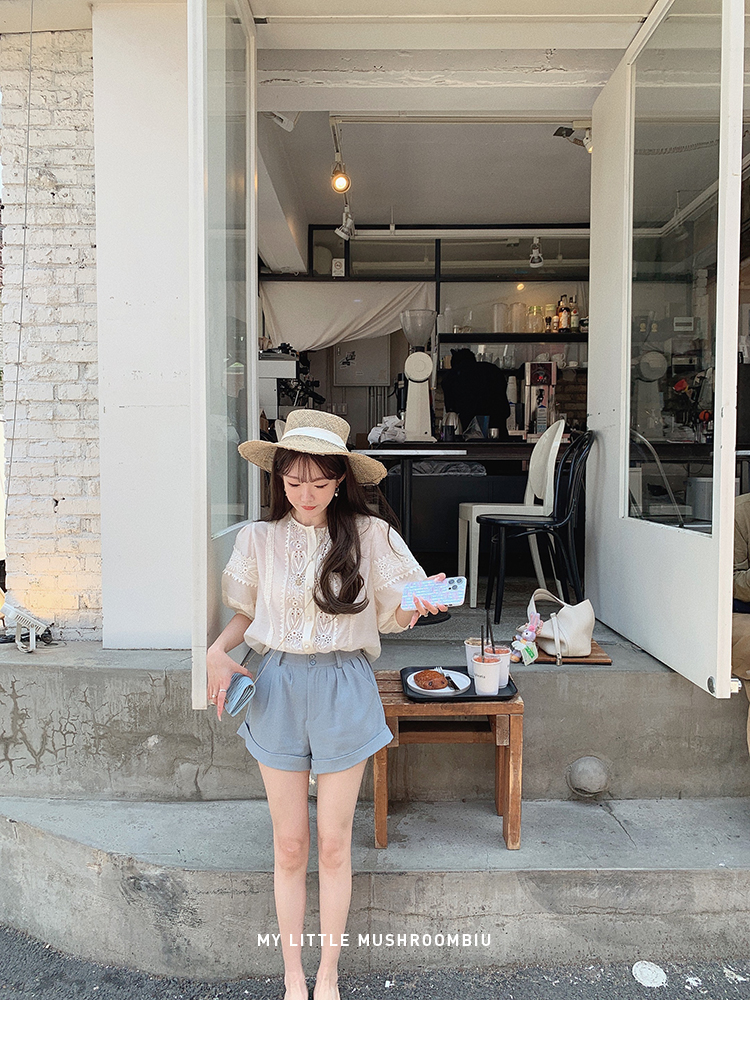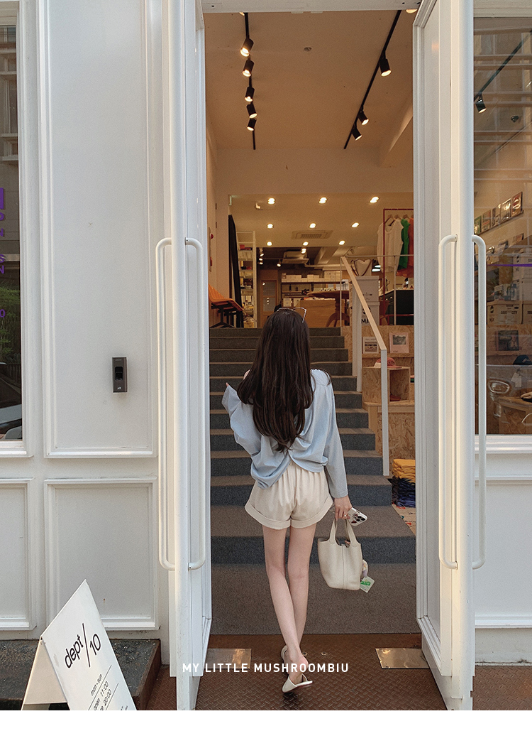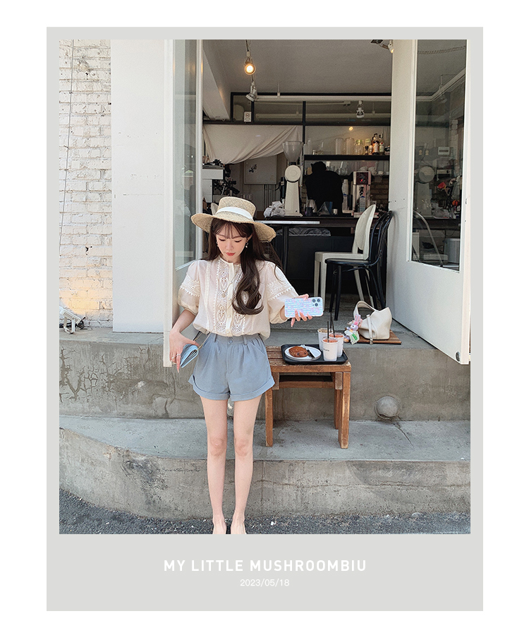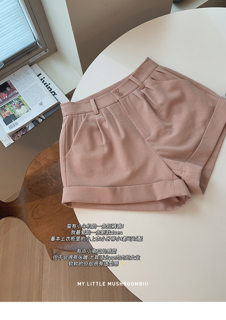 灰蓝XS码 金蘑菇菇Etoil 风情南瓜裤/夏季卷边高腰阔腿短裤女休闲宽松裤子
