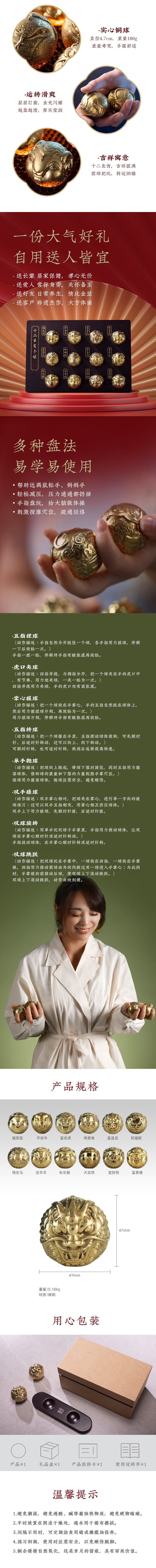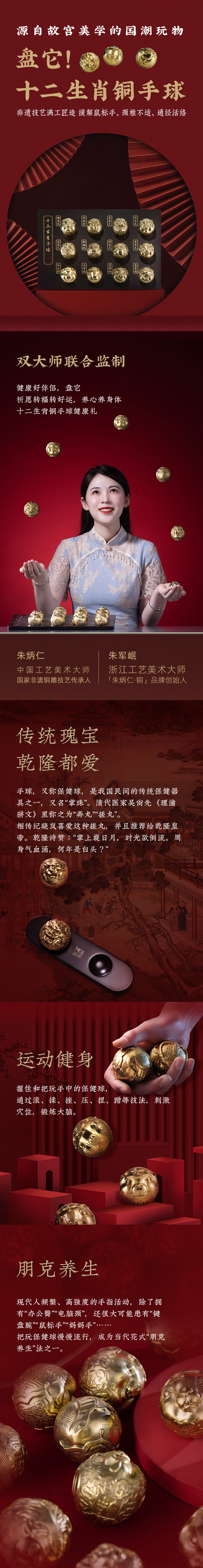 双大师联合制作 民间掌珠 十二生肖金球